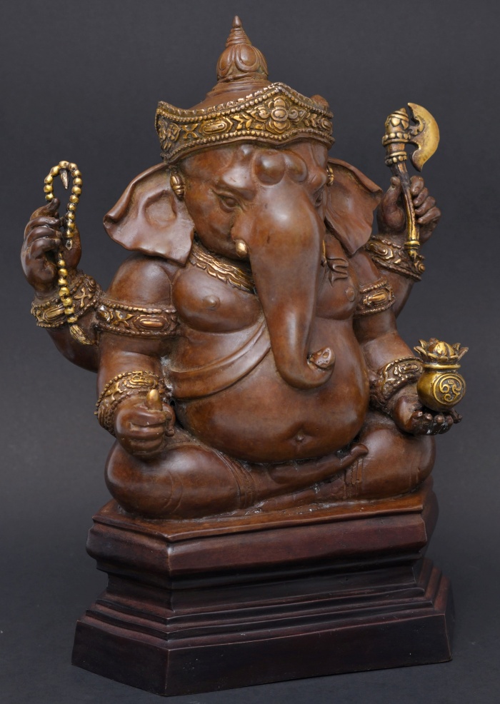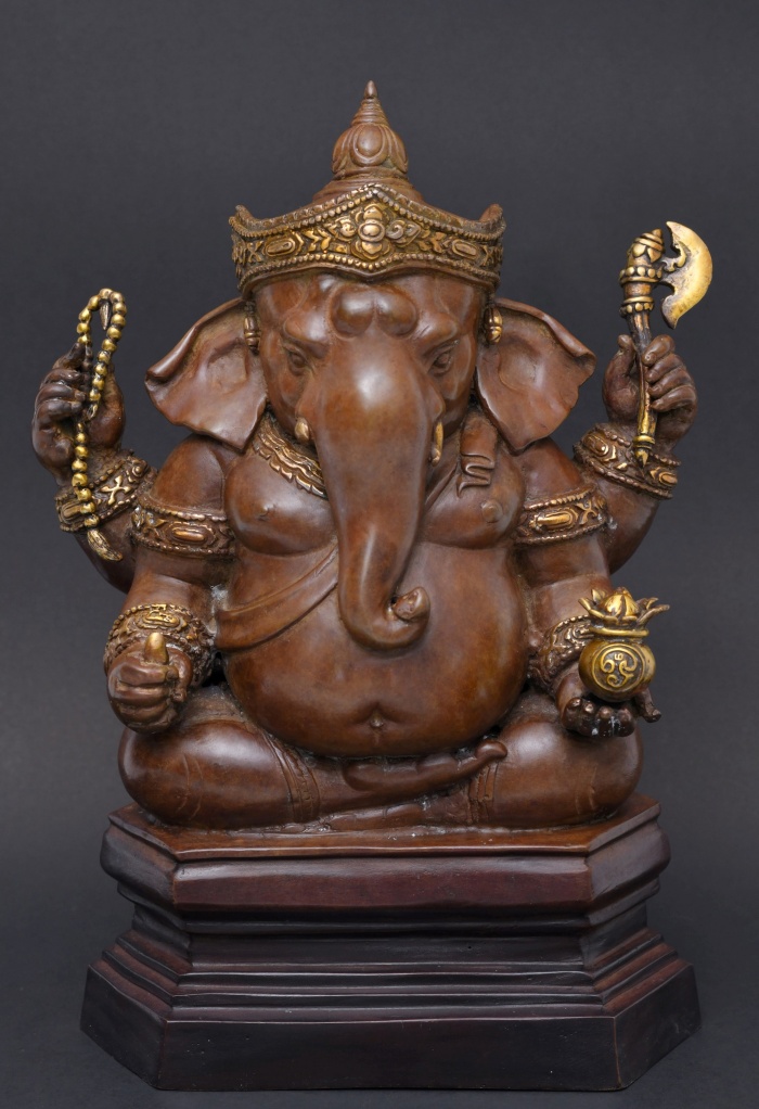 พระพิฆเนศศรีตันติคณปติ หล่อด้วยโลหะสัมฤทธิ์ (บรอนซ์) สีน้ำตาลเปลือกมะขาม เทคนิคการทำสีพาตินาที่พิเศษและทันสมัย จัดสร้าง 2 ขนาด ได้แก่ 1.ขนาดหน้าตัก 5 นิ้ว สูง 9 นิ้ว จัดสร้างจำนวน 50 องค์ 2.ขนาดหน้าตัก 3 นิ้ว สูง 5 นิ้ว จัดสร้างจำนวน 50 องค์ สอบถามที่ Facebook : Art No Hand Foundation