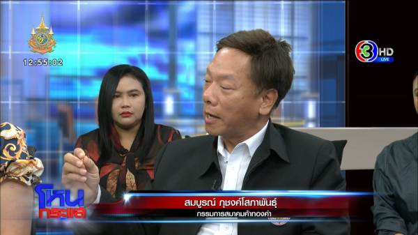ทองที่อยู่ข้างหน้า เชื่อว่าไม่ได้ปลอม ไม่ได้เข้าข้างกัน ผมก็เชื่อว่าฝั่งท่านสมบูรณ์ก็คิดว่าไม่ได้ปลอม มันเป็นทองหมด ยกเว้นของแถม ทองพูดไปก็หลากหลายมาก อันดับแรกต้องเข้าใจว่า ถ้าเป็นทองคำบริสุทธิ์ทำเป็นแท่งๆ ก็เป็นทอง 99.99 เปอร์เซ็นต์ ส่วนใหญ่ก็เป็นทองแท่ง แต่พวกสร้อยคอทองคำที่เราใส่ๆ กันอยู่ จะเป็นทอง 96.5 เปอร์เซ็นต์ เขาต้องมีส่วนประกอบเงินเข้าไปด้วย เพื่อให้ทองแข็งและทำเป็นสร้อยได้ แล้วย่อยไปอีกอย่างทอง 18k อย่างสร้อยนี้ ในนี้เปอร์เซ็นต์ทองมีเท่าไหร่ มีประมาณ 75 เปอร์เซ็นต์ มันก็ย่อยไปอีก มีทอง 9k 40 กว่าเปอร์เซ็นต์ น้อยลงไปอีก ทั้งหมดเรียกว่าทองมั้ย เรียกว่าทอง ประเด็นนี้สำหรับผมเอง ผมไม่ได้มองว่าคุณขายทองปลอม แต่ผมกำลังมองเรื่องการโฆษณาชวนเชื่อ การที่ชาวบ้านเขาสนใจเรื่องทอง เขาไม่รู้หรอกว่าทองเป็นแบบไหน เขารู้อย่างเดียวว่าเฮ้ย ซื้อทอง ทองร้านนี้ถูกกว่า กูซื้อที่นี่ เดี๋ยวไปขายที่อื่นได้แพงกว่า เขามองแค่นี้ เพราะอะไร เพราะเรากำลังเล่นกับความรู้สึกของมนุษย์ ยิ่งคนที่เขายากจน ไม่มีเงิน เขามองว่าทองร้านนี้จังว่ะ เดี๋ยวซื้อทองร้านนี้มาเก็บเอาไว้ สักพักไปขายน่าจะได้ทองราคาสูงขึ้น เขาไม่รู้นี่ ไม่มีใครไปบอกเขาว่านี่คือทอง 18k ทอง 9k หรือคุณอาจจะเคยบอก แต่เขาอาจไม่เคยรู้ก็ได้ ถ้าคุณตั๊กกับคุณเบียร์บอกว่าทองนี้ถ้าซื้อไปจะเป็นแบบนี้นะ พูดเหมือนที่ผมอธิบายไป เชื่อว่าชาวบ้านจะเข้าใจ ผมพูดถูกมั้ย?