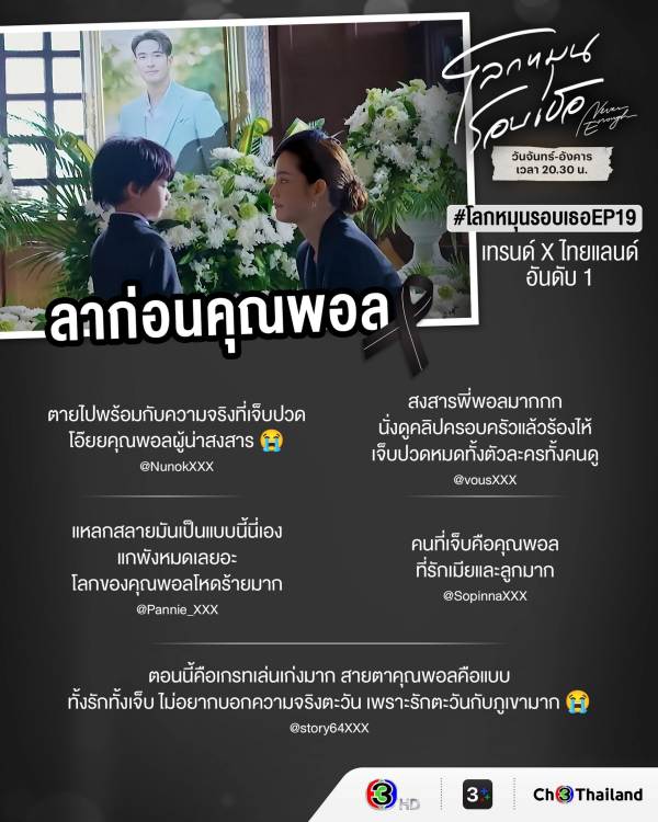เรียกว่าเป็นอีกสองอีพีที่บีบหัวใจคนดูสุด ๆ สำหรับละคร Coming of age “โลกหมุนรอบเธอ” ของผู้จัดคนเก่ง “แอน ทองประสม” บริษัท ทอง สตูดิโอ จำกัด เมื่อคุณพอล (เกรท วรินทร) ต้องจากไปพร้อมความจริงที่เจ็บปวด ทำเอาชาวโซเชียลน้ำตาไหลพราก รู้สึกเศร้าใจที่โลกของคุณพอลโหดร้ายและแตกสลาย