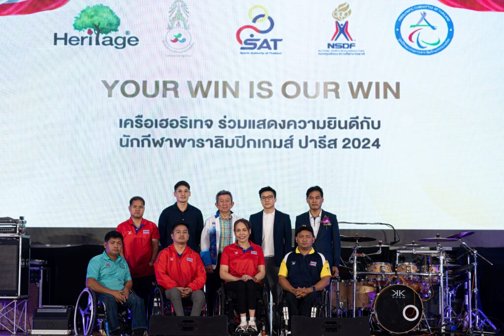 เครือเฮอริเทจ ผู้ผลิตและจัดจำหน่ายอาหารและเครื่องดื่มเพื่อสุขภาพ เข้าร่วมงานเลี้ยงแสดงความยินดีกับความสำเร็จของนักกีฬาพาราลิมปิกทีมชาติไทย นำโดย วิทวัสพลไพศาลรองประธานกรรมการเครือเฮอริเทจ (แถวบนที่ 2 จากขวา) ภายในงานถือเป็นวาระสำคัญที่เครือเฮอริเทจได้มอบเงินรางวัลรวม 5,300,000 บาท ให้กับนักกีฬาทุกท่านที่ได้รับเหรียญจากการแข่งขันมหกรรมกีฬาพาราลิมปิกเกมส์ครั้งที่ 17 ณ กรุงปารีส ประเทศฝรั่งเศส ที่เพิ่งจบไป ภายใต้โครงการของเครือ