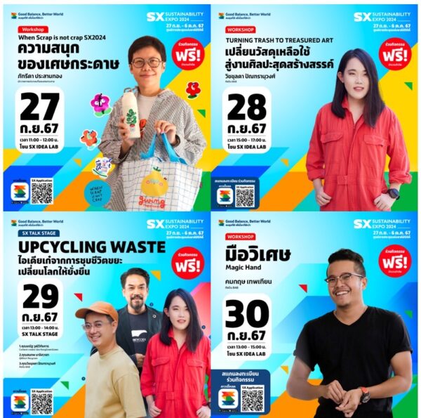 ขยะล้นโลกเป็นปัญหาใหญ่ที่ยังแก้ไม่ตก และส่งผลกระทบมากมายทั้งต่อสิ่งแวดล้อม ชุมชน และเรา ทุกคน แม้จะมีความตื่นตัวเรื่องการจัดการขยะกันมากขึ้น แต่รู้ไหมว่า วันนี้ มีขยะในประเทศไทยเพียง 31% เท่านั้น จาก 27 ล้านตันต่อปี ที่ถูกนำมารีไซเคิล (Recycle) หรืออัพไซเคิล (Upcycling) ซึ่งเป็นการกำจัดขยะที่มีประสิทธิภาพ ใครยังไม่ได้ลงมือทำ อยากรู้วิธีคัดแยกขยะได้ง่าย ๆ และไอเดียเจ๋งในการชุบชีวิตขยะเป็นของมีค่าผ่านการรีไซเคิล/อัพไซเคิล มาพบกับผู้รู้ ผู้เชี่ยวชาญในหลากหลายกิจกรรมการจัดการขยะได้ที่งาน SX2024 ตั้งแต่ 27 กันยายน ถึง 6 ตุลาคม 2567 ณ ศูนย์การประชุมแห่งชาติสิริกิติ์
