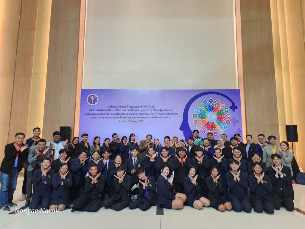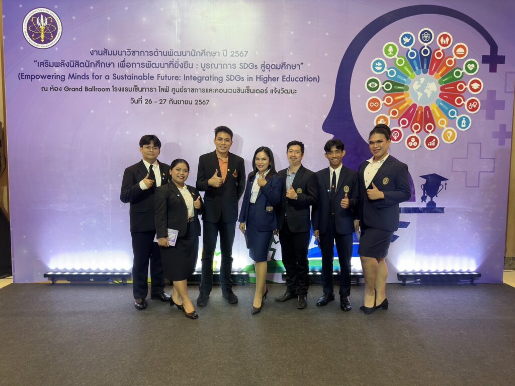 วันที่ 26 – 27 กันยายน 2567 ณ ห้อง Grand ballroom เซ็นทารา ไลฟ์ ศูนย์ราชการ และคอนเวนชันเซ็นเตอร์ ถ.แจ้งวัฒนะ กรุงเทพมหานคร มหาวิทยาลัยราชภัฏสวนสุนันทา โดย กองพัฒนานักศึกษา ฝ่ายกิจกรรมนักศึกษาและกิจการศิษย์เก่า นำโดย ผู้ช่วยศาสตราจารย์ ดร.ธุวธิดา สุวรรณรัตน์ ผู้ช่วยอธิการบดีฝ่ายกิจการนักศึกษา ได้รับมอบหมายจาก รองศาสตราจารย์ ดร.ชุติกาญจน์ ศรีวิบูลย์ อธิการบดี พร้อมด้วย นายอรรถสิทธิ์ นิกรวัฒน์ หัวหน้าฝ่ายกิจกรรมนักศึกษาและกิจการศิษย์เก่า นายปัณณวัฒน์ ทองสุข และผู้นำนักศึกษา จำนวน 4 คน ได้แก่ นางสาวณัฐทริกา ฉ่ำพรมราช นักศึกษาสาขาวิชาสังคมศึกษา คณะครุศาสตร์ ประธานสภานักศึกษา นายบัณฑิตา รักษาวงศ์ สาขาวิชาภาษาอังกฤษ คณะมนุษย์ศาสตร์และสังคมศาสตร์ รองประธานสภานักศึกษา นายภัคนันท์ เที่ยงอ่อน สาขาวิชาสังคมศึกษา คณะครุศาสตร์ เลขาธิการสภานักศึกษา และนายรุสลัน มะยูโซะ สาขาวิชารัฐศาสตร์ วิทยาลัยการเมืองและการปกครอง อุปนายกองค์การนักศึกษา เข้าร่วมสัมมนาวิชาการด้านการพัฒนานักศึกษา ปี 2567 หัวข้อ “ เสริมพลังนิสิตนักศึกษา เพื่อการพัฒนาที่ยั่งยืน : บูรณาการ SDGs in Higher Education จัดโดย สำนักงานปลัดกระทรวงการอุดมศึกษา วิทยาศาสตร์ วิจัยและนวัตกรรม เพื่อเปิดโอกาสให้ผู้บริหารและบุคลากรด้านการพัฒนานักศึกษาได้แลกเปลี่ยนเรียนรู้ เป็นแนวทางการพัฒนานักศึกษา ตลอดจนแนวทางการแก้ปัญหาสำหรับงานด้านกิจการนักศึกศึกษาอย่างมีประสิทธิภาพ และที่สำคัญเป็นการเปิดโอกาสให้ผู้นำนักศึกษาได้พบปะและแลกเปลี่ยนประสบการณ์ในการทำงานร่วมกันอีกด้วย