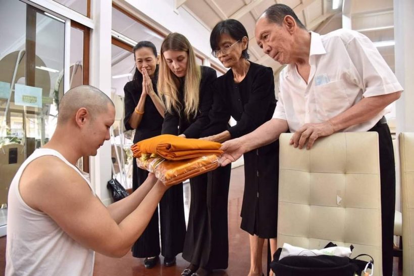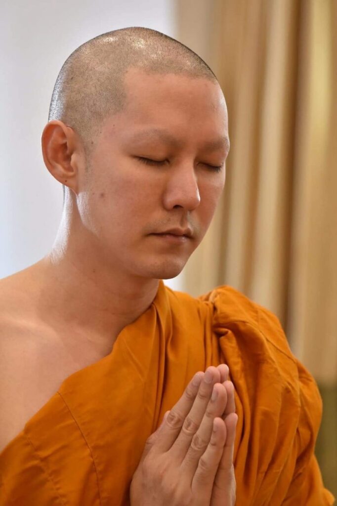 “แอมป์ พีรวัศ” กราบขอขมา โกนหัวบวชหน้าไฟให้เพื่อนรัก