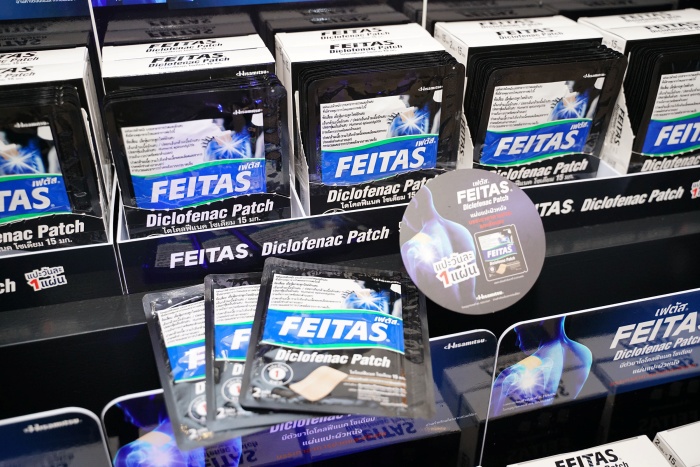 สำหรับข้อมูลเกี่ยวกับผลิตภัณฑ์ใหม่ มร. คัตสึฮิโระ ซาโตะ เจ้าหน้าที่บริหารอาวุโส ผู้จัดการทั่วไป สำนักงานขาย APEA ฝ่ายระหว่างประเทศ ให้รายละเอียดว่า “พลาสเตอร์บรรเทาปวด “เฟตัส ไดโคลฟีแนค” เป็นแผ่นแปะคุณภาพสูงที่ผลิตในประเทศญี่ปุ่น ซึ่งนับเป็นความท้าทายครั้งใหม่ของฮิซามิทสึ ในฐานะผู้นำด้านแผ่นแปะบรรเทาปวดระดับโลก ในการนำ “ไดโคลฟีแนค” ยาต้านการอักเสบชนิดหนึ่งซึ่งใช้กันแพร่หลายทั่วโลกในฐานะส่วนผสมทางการแพทย์เพื่อรักษาอาการปวดตามข้อ กล้ามเนื้อ เอ็น และกระดูก แต่ก่อให้เกิดผลข้างเคียงในผู้ใช้ค่อนข้างมากเมื่อนำมาใช้ในรูปแบบของยารับประทาน มาพัฒนาสู่การใช้เทคโนโลยีระบบส่งยาผ่านผิวหนัง (TDDS : Transdermal Drug Delivery System) ที่ปลอดภัยกว่า เพียงแปะพลาสเตอร์ลงบนผิวหนังบริเวณที่มีอาการปวด สารออกฤทธิ์จะค่อย ๆ ปลดปล่อย และซึมผ่านผิวหนังเข้าสู่บริเวณที่ปวดอย่างต่อเนื่อง ช่วยลดอาการปวดและการอักเสบผ่านกระบวนการยับยั้งการผลิตสารก่อการอักเสบ เหมาะสำหรับผู้ที่มีอาการปวดรุนแรงและมีการอักเสบของกล้ามเนื้อแบบเรื้อรัง และผู้ที่มีความเสี่ยงสูงต่ออาการไม่พึงประสงค์จากการใช้ยารับประทาน ซึ่งได้รับการตอบรับที่ดีมากจากการเปิดตัวในประเทศญี่ปุ่น และมียอดขายสูงสุดในหมวดนี้ โดย “เฟตัส ไดโคลฟีแนค” ได้รับการพัฒนาให้มีประสิทธิภาพในการบรรเทาปวดที่ยาวนานสูงถึง 24 ชั่วโมง มีผลข้างเคียงน้อย และช่วยบรรเทาอาการปวดในระยะยาวได้อย่างปลอดภัย โดยผู้ใช้จะต้องมีอายุ 15 ปีขึ้นไป มีจำหน่ายแบบซอง 2 แผ่น ราคา 99 บาท และซอง 7 แผ่น ราคา 299 บาท โดยเริ่มวางจำหน่ายแล้ว ณ ร้านขายยาระบบเครือข่าย (Key Chain Pharmacies) และร้านขายยาทั่วไป”