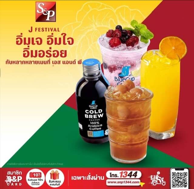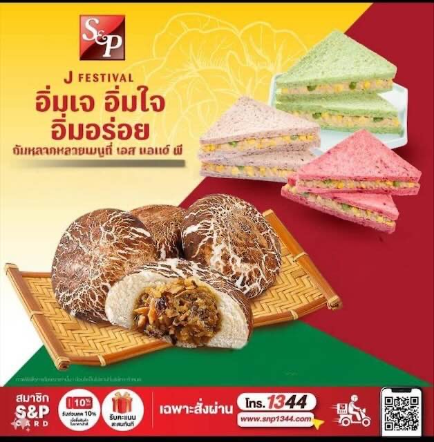 เทศกาลกินเจ อิ่มเจ อิ่มใจ อิ่มอร่อย ร้านอาหาร เอส แอนด์ พี ต้อนรับเทศกาลเจ “อิ่มเจ อิ่มใจ อิ่มอร่อย” ด้วยหลากหลายเมนูใน ทั้งเบเกอรี่ อาหาร และเครื่องดื่ม ที่ เลือกอร่อยกับอาหารเจยอดนิยม มากกว่า 25 เมนู เช่น ข้าวผัดหนำเลี๊ยบทรงเครื่องเจ,แกงเผ็ดเป็ดย่างเจ, และเสริมทัพความอร่อยด้วยเมนูใหม่ อาทิ เห็ดเข็มทอง -ยำมะม่วง, ข้าวซอยเห็ดเทมปุระ,เต้าหู้หมูพะโล้เห็ดหอมเจ สำหรับสายรักสุขภาพ แนะนำ แซนวิชทูน่าข้าวโพดแพลนท์เบสเจ