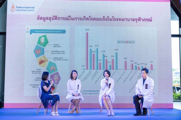 “มะเร็งเต้านม” เป็นมะเร็งที่พบมากเป็นอันดับ 1 ของสตรีไทยและสตรีทั่วโลก โดยมีแนวโน้มเพิ่มขึ้นอย่างต่อเนื่อง ทั้งนี้ องค์การอนามัยโลก กำหนดให้เดือนตุลาคมของทุกปี เป็นเดือนแห่งการรณรงค์ต้านภัยมะเร็งเต้านมสากล เพื่อสร้างความตระหนักรู้ถึงความสำคัญต่อสุขภาพเต้านมของตนเอง และด้วยเทคโนโลยีการแพทย์ในปัจจุบัน โรคมะเร็งเต้านมสามารถตรวจพบได้ตั้งแต่ระยะเริ่มแรกซึ่งจะช่วยทำให้ผู้ป่วยได้เข้าถึงการรักษารวดเร็วและได้ผลดี เพิ่มอัตราการรอดชีวิตของผู้ป่วยได้สูงขึ้น และเพิ่มคุณภาพชีวิตของผู้ป่วย โดยโรงพยาบาลจุฬาภรณ์ ราชวิทยาลัยจุฬาภรณ์ ได้เล็งเห็นถึงความสำคัญ จึงได้ผนึกความร่วมมือกับภาคีเครือข่ายจัดกิจกรรม Pink Power, A Mile to Smile ก้าวต่อไปเพื่อรอยยิ้มของผู้ป่วยมะเร็งเต้านม โดยเปิดเวทีเสวนาให้ความรู้ในเรื่อง “นวัตกรรมการตรวจวินิจฉัยและรักษาผู้ป่วยมะเร็งมะเร็งเต้านม” ของโรงพยาบาลจุฬาภรณ์ ซึ่งมุ่งเน้นการให้บริการทางการแพทย์ด้านโรคมะเร็งที่เป็นเลิศแก่ประชาชน โดยเฉพาะผู้ป่วยที่ขาดแคลนเพื่อให้สามารถเข้าถึงเทคโนโลยีการตรวจรักษาโรคมะเร็งที่มีคุณภาพและได้มาตรฐานอย่างเท่าเทียม สนองการดำเนินงานตามพระปณิธานใน ศาสตราจารย์ ดร. สมเด็จเจ้าฟ้า ฯ กรมพระศรีสวางควัฒน วรขัตติยราชนารี องค์ประธานและนายกสภาราชวิทยาลัยจุฬาภรณ์ ผู้ทรงก่อตั้งโรงพยาบาลจุฬาภรณ์แห่งนี้ เพื่อช่วยเหลือและบรรเทาความทุกข์ทรมานของผู้ป่วยมะเร็งและญาติ ควบคู่ไปกับการพัฒนาบุคลากรทางการแพทย์ การค้นคว้าวิจัยทางด้านวิชาการ ตลอดจนยกระดับและพัฒนาด้านการตรวจวินิจฉัยและรักษาโรคมะเร็งด้วยเทคโนโลยีทางการแพทย์ขั้นสูงในประเทศไทยให้ได้มาตรฐานทัดเทียมนานาประเทศ ทั้งนี้ จากสถิติการรักษาผู้ป่วยมะเร็งของโรงพยาบาลจุฬาภรณ์ จำนวนผู้ป่วยมะเร็งที่พบมากเป็นอันดับหนึ่ง คือ มะเร็งเต้านม โดยตั้งแต่ปี 2561 – 2566 มีจำนวนผู้ป่วยมะเร็งเต้านมเพิ่มขึ้นอย่างต่อเนื่อง โดยในการรักษาผู้ป่วยแต่ละคนถึงแม้จะเป็นมะเร็งเต้านมเหมือนกัน แต่การรักษาแตกต่างกัน โดยแพทย์จะคำนึงถึงปัจจัยต่าง ๆ เช่น ระยะของตัวโรค , ชนิดของมะเร็งเต้านม , pattern การกระจายตัวของโรค , อาการของผู้ป่วย , ความแข็งแรงของร่างกายผู้ป่วย เป็นต้น ทั้งนี้ ปัจจุบันมียามุ่งเป้าที่ออกฤทธิ์จำเพาะกับมะเร็งเต้านมซึ่งเลือกใช้ให้ตรงกับแต่ละชนิดของมะเร็งเต้านม ยกตัวอย่างเช่นในชนิด luminal subtype ที่มีการติดตัวรับฮอร์โมนเป็น positive ส่วน HER2 negative นั้น ก็จะมียามุ่งเป้าแบบกินที่บวกเข้าไปกับการกินยาต้านฮอร์โมนธรรมดา ซึ่