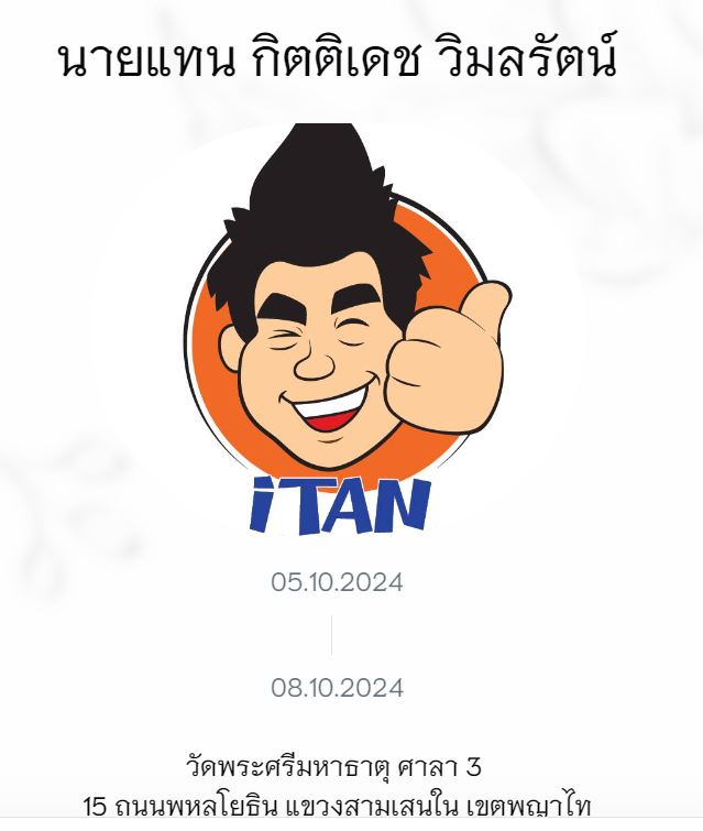 จากกรณ๊ “แทน-กิตติเดช วิมลรัตน์” หรือ “แทนไร้เทียมทาน” ยูทูบเบอร์ด้านอาหารชื่อดัง เจ้าของช่องยูทูบ iTAN TV และหุ้นส่วนร้านอาหาร “เผ็ดมาร์ค” ได้เสียชีวิตในวัย 47 ปี ตามที่เสนอข่าวไปแล้วนั้น