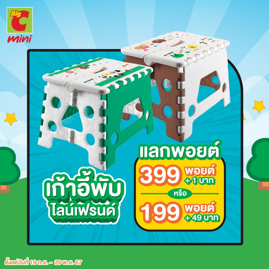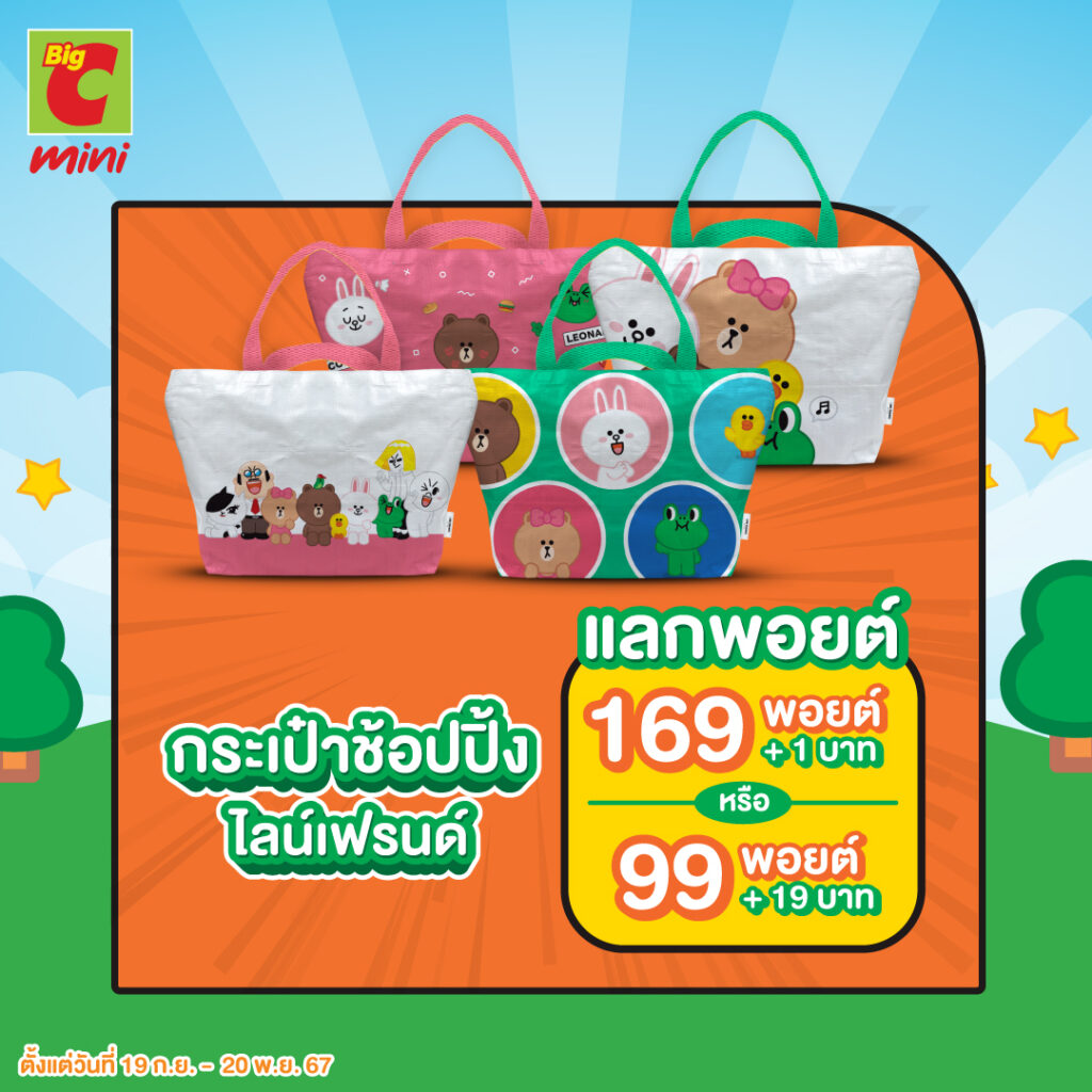 ทุกการซื้อสินค้าจาก Big C Mini ลูกค้าสามารถสะสมคะแนนผ่านสมาชิกบิ๊กพอยต์ได้ทันที โดยทุกการซื้อสินค้า 25 บาท ลูกค้าจะได้รับ 1 พอยต์ไปเก็บสะสม และพิเศษสุดๆ สำหรับเมื่อลูกค้าซื้อสินค้าที่ร่วมรายการในช่วงระหว่างวันที่ 19 ก.ย. 67 – 1 ม.ค. 68 รับพอยต์จุกๆ เพื่อนำไปแลกรับของรางวัลสุดพิเศษพรีเมียมลิขสิทธิ์แท้จาก LINE FRIENDS ที่ทุกคนหลงรัก