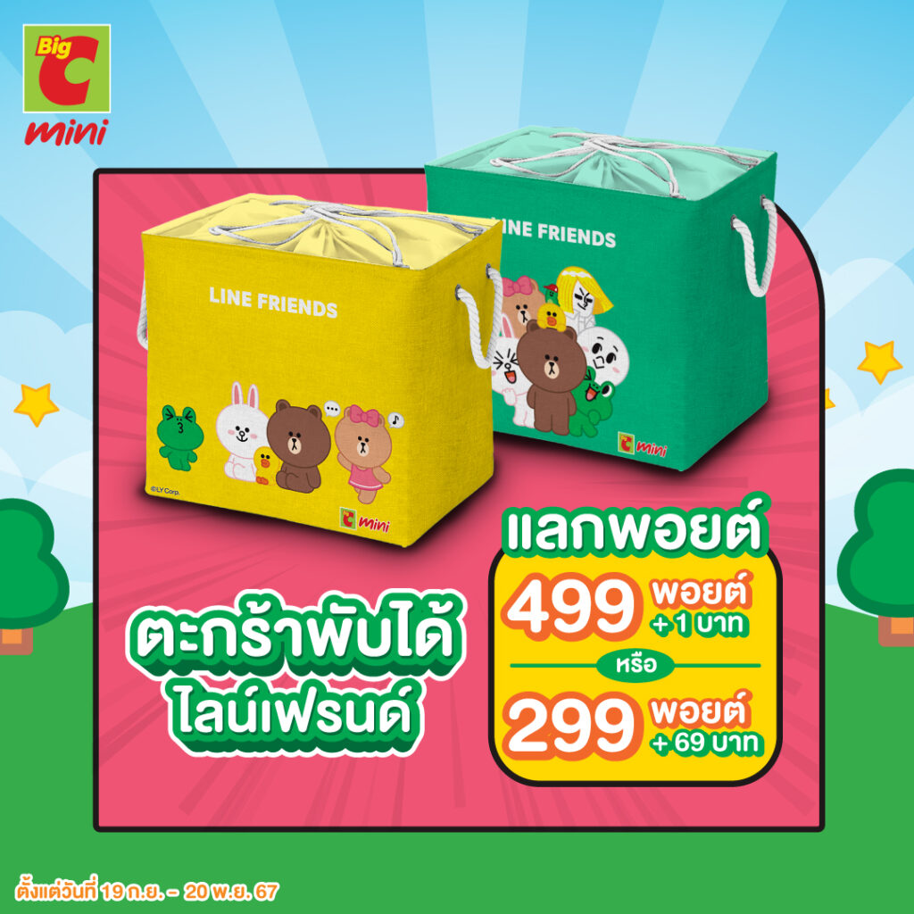 บิ๊กซี มินิ (Big C Mini) เอาใจนักชอปทั่วประเทศ ด้วยการเปิดตัวแคมเปญสุดพิเศษ “บิ๊กซีมินิแจกพอยต์ทุกวันแลกของพรีเมียม LINE FRIENDS ที่จะทำให้ทุกการชอปปิ้งของคุณเต็มไปด้วยความคุ้มค่า พร้อมกับโอกาสในการสะสมพอยต์และแลกรับของพรีเมียมสุดน่ารักจาก LINE FRIENDS ลิขสิทธิ์แท้ที่แฟน ๆ ห้ามพลาด เริ่มแล้วตั้งแต่วันนี้จนถึงวันนี้ – 1 มกราคม 2568