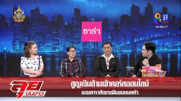 ของตนเองลงไปแล้วขายไม่ได้ ก็ให้หยุดที่ป้า ป้าไม่เอาใครมาทำอีกแล้ว ให้มันจบอยู่ที่ป้า ไม่อยากให้ใครมาทุกข์เหมือนป้า ถ้าไม่นึกถึงลูกก็จะโดดตึกตาย เสียดายเงิน เก็บเงินมาทั้งชีวิต ลงไปแล้วขายไม่ได้เลย และที่ทำงานอยู่ชั้น 10 คิดทุกวัน กินยาพาราทุกวัน มันปวดหัว เงินไม่ได้ ขายไม่ได้ ก็เอามาลงไว้ แจกบ้าง ขายได้นิดหน่อย ขายขาดทุน ต้นทุน 299 บาท เราขาย 200 บาท 5 แถม 1 ได้ 1,000 บาท