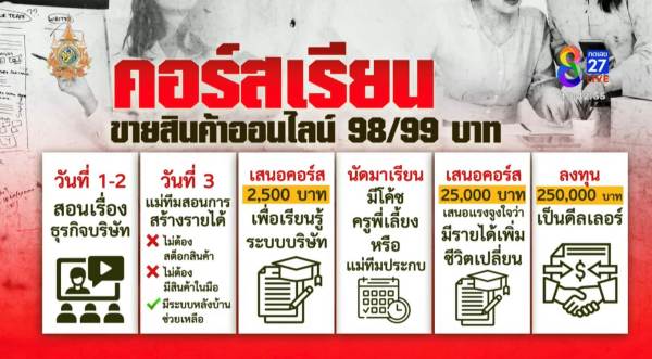 คือสินค้า เราขายไม่ได้ เท่ากับว่า พวกเราต้องหาไอ้คนนี้มาเป็นลูกทีมเรื่อยๆ เพื่อเราจะเอาเงินตรงนี้ เพราะเราเสียไปแล้ว 250,000 บาท เท่ากับว่าเราต้องหาคนเรื่อยๆ พี่หาคนได้ไหม?