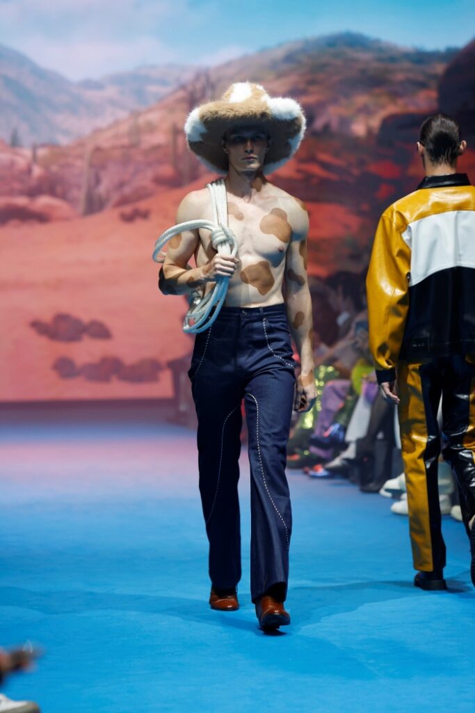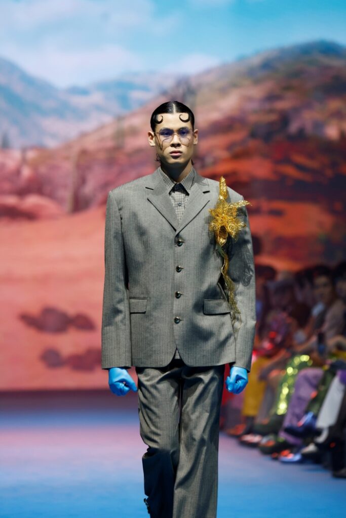 ​ต่อด้วยแบรนด์ ANURUQ พาทุกคนย้อนไปสู่ American western old town ผ่านเสื้อผ้า Menswear ในรูปแบบ Classy Street ที่สะท้อนตัวตนของ ANURUQ ได้อย่างชัดเจน อัดแน่น ไปด้วยดีไซน์อันโดดเด่น ผสมผสานกับเรื่องราวการเดินทางอันน่าตื่นเต้นและน่าประทับใจของเด็กวัยกำลังซน ภายใต้คอลเลกชัน “Take a trip to the thrill”