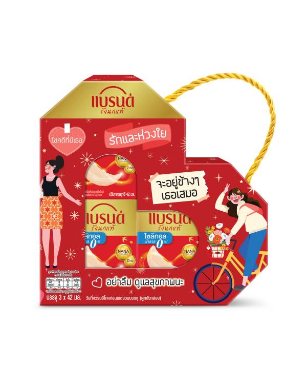 ธีม “รักและห่วงใย” “จะอยู่ข้าง ๆ เสมอ” ลวดลายสื่อถึงความรักที่เต็มไปด้วยความอ่อนโยนและห่วงใย ที่มีความเข้าใจและสนับสนุนกัน โดยใช้ภาพวาดการโอบกอดที่อบอุ่นท่ามกลางบรรยากาศที่เต็มไปด้วยความรักและความห่วงใยซึ่งกันและกัน สายตาของตัวละครในภาพสะท้อนถึงความผูกพันและความรักที่ลึกซึ้ง เป็นบรรยากาศที่ทำให้ผู้ชมรู้สึกถึงความอ่อนโยน และความหมายของความรัก ผ่านเซตของขวัญ แบรนด์ วีต้า วิตามิน A เบอร์รี่ ราคา 315 บาท และ แบรนด์รังนกแท้ จำนวน 3 ขวด ราคา 598 บาท