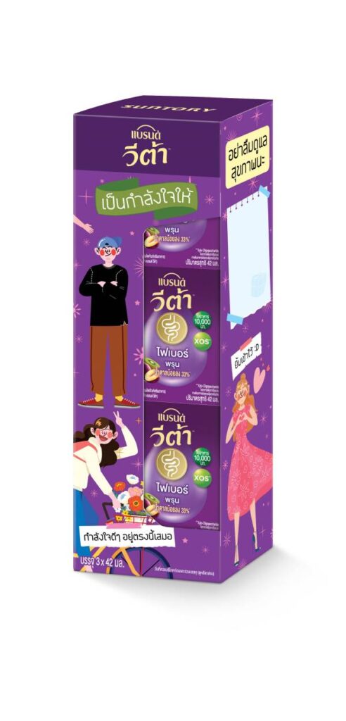 ธีม “เป็นกำลังใจให้” “กำลังใจดี ๆ อยู่ตรงนี้เสมอ” แรงบันดาลใจของภาพนี้มาจากการสื่อถึงพลังที่สามารถส่งผ่านจากคนหนึ่งไปสู่อีกคนหนึ่งได้ เช่น การโอบกอดเบา ๆ หรือการยื่นมือให้กับคนที่กำลังเผชิญปัญหา เป็นสัญลักษณ์ของการไม่ยอมแพ้ และสุดท้ายการมีคนคอยอยู่ข้าง ๆ คอยเป็นกำลังใจให้ในยามที่รู้สึกเหนื่อยล้าก็เป็นอีกพลังที่ส่งเราให้ก้าวผ่านเรื่องราวต่างๆ ไปได้ ในรูปแบบเซตของขวัญแบรนด์ วีต้า ไฟเบอร์พรุน จำนวน 3 ขวด ราคา 315 บาท