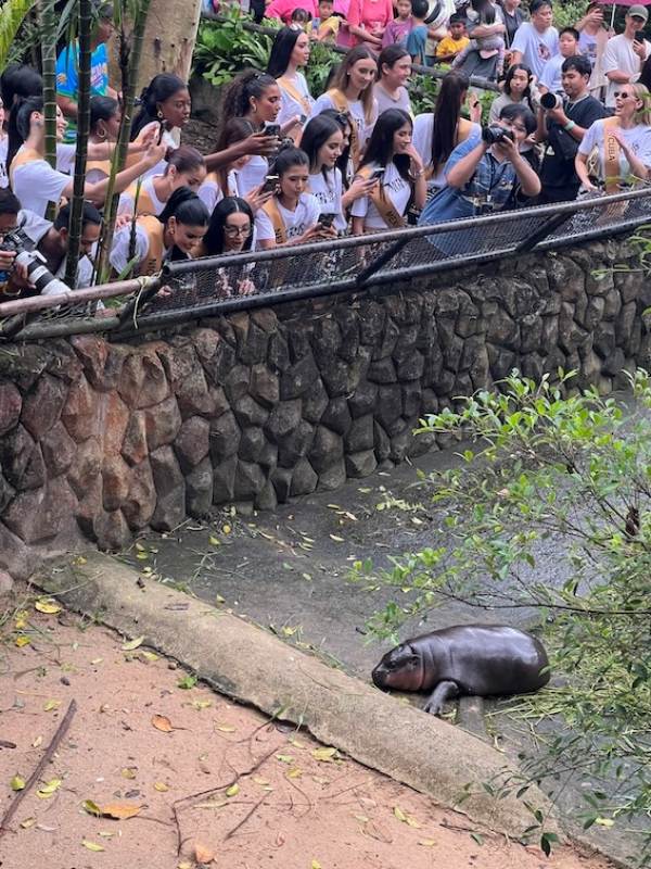 สาวงามผู้เข้าประกวด มิสแกรนด์ อินเตอร์เนชั่นแนล 2024 จำนวน 70 ประเทศทั่วโลก ที่เดินทางมาร่วมกิจกรรมเก็บตัวที่ เมืองพัทยา จังหวัดชลบุรี ตลอดสัปดาห์ที่ผ่านมา ซึ่งกิจกรรมที่นางงามเรียกร้องมากที่สุดคือการไปพบ หมูเด้ง ฮิปโปเซเลปสุดฮอตระดับโลก ที่ สวนสัตว์เปิดเขาเขียว (Khao Kheow Open Zoo’s) อ.ศรีราชา จ ชลบุรี