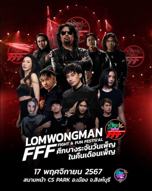 ล้อมวงมันส์ ฟัน เน็ตเวิร์ค จัดมหกรรมความสนุกสุดยิ่งใหญ่ ครบรสทั้ง กีฬาและคอนเสิร์ต รับคืนเดือนเพ็ญกับ “ล้อมวงมันส์ FFF : FIGHT FUN FESTIVAL” ระหว่างวันที่ 15 – 17 พฤศจิกายน 2567 ณ ซีเอส พาร์ค จังหวัดสิงห์บุรี เพื่อส่งเสริมศิลปวัฒนธรรมมวยไทย ดนตรี การท่องเที่ยว กระตุ้นเศรษฐกิจ ชูประเทศไทยเป็นศูนย์กลางการท่องเที่ยวแบบยั่งยืน จัดเต็มแสง สี เสียง สนุก! ครบ! คุ้ม! ในงานเดียว