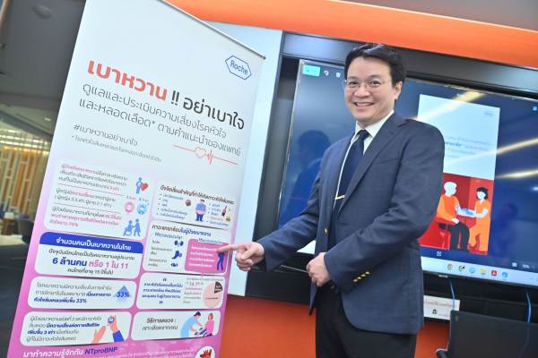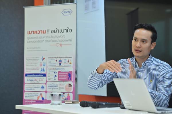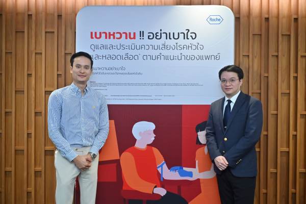 กรุงเทพมหานคร—30 ตุลาคม 2657, บริษัทโรช ไดแอกโนสติกส์ (ประเทศไทย) จำกัด จัดกิจกรรม “แพทย์ชวนคุย เบาหวานอย่าเบาใจ ดูและและประเมินความเสี่ยงโรคหัวใจและหลอดเลือดตามคำแนะนำของแพทย์” โดยมี รศ. นพ. ธาดา คุณาวิศรุต อายุรแพทย์ต่อมไร้ท่อและเมตะบอลิสม และ นายนิธิ คงทน ผู้ป่วยโรคเบาหวานชนิดที่ 2 เจ้าของช่องติ๊กต๊อก แด๊ดดี้สายเบาหวาน ร่วมให้ข้อมูล เพื่อสร้างความตระหนักรู้ให้ผู้ป่วยเบาหวานเห็นถึงความสำคัญของการเข้ารับการตรวจประเมินความเสี่ยงโรคหัวใจและหลอดเลือดซึ่งเป็นโรคแทรกซ้อนอันดับ 2 ของผู้ป่วยเบาหวาน พร้อมเผยสถิติที่น่าสนใจ อาทิ
