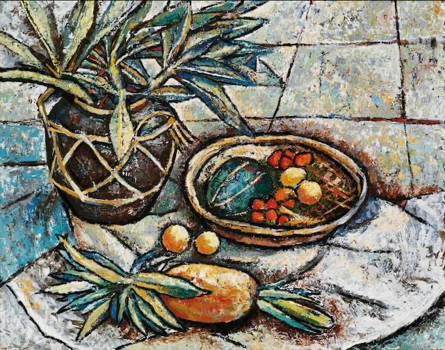 ลงชื่อและวันที่ “ดำรง 1961” (มุมขวาบน); ลงชื่อ จารึก และวันที่ “Damrong W 1961 Bangkok” (ด้านหลัง) สีน้ำมันบนกระดาน