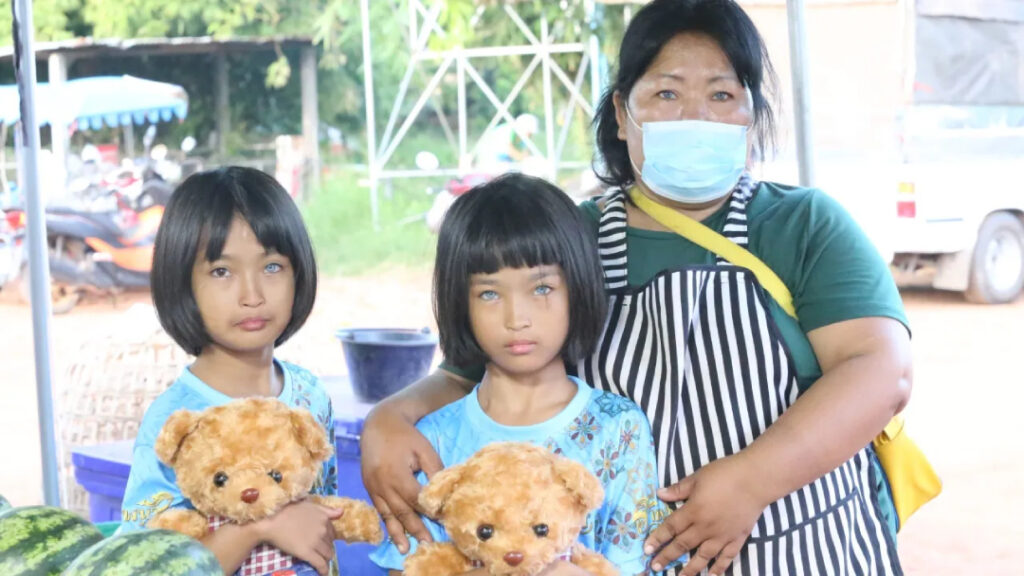 กลายเป็นที่พูดถึงตามสื่อโซเชียล สำหรับเด็กหญิงฝาแฝดอายุ ที่ชื่อ น้องแก้ม – น้องกิ๊ฟ ที่อายุ 9 ขวบ โดย น้องแก้มแฝดพี่ มีตาสีฟ้าทั้ง 2 ข้าง ส่วน น้องกิ๊ฟ แฝดน้อง มีตาสีฟ้าข้างเดียว เหมือนใส่คอนแทคเลนส์เลย แต่สามารถมองเห็นได้ปกติ