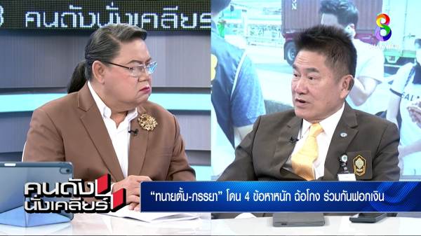 ช่วงนี้วงการทนายความมีสั่นสะเทือน หลังจากมีข่าวทนายตั้ม และภรรยา ถูกคุมตัวฝากขัง จากปมของมาดามอ้อย รายการ คนดังนั่งเคลียร์ ทางช่อง 8 ในเครือ อาร์เอส กรุ๊ป จึงขอเชิญ พล.ต.ต.วิชัย สังข์ประไพ หรือ ผู้การแต้ม พร้อม ทนายแก้ว หรือ ดร.มนต์ชัย จงไกรรัตนกุล พูดคุยถึงประเด็นเบื้องลึก เบื้องหลังของทนายความ และโฟนอิน เบนซ์ เรซซิ่ง เปิดใจหลังเคยถูกทนายตั้มเรียกเงินหลักสิบล้าน เพื่อช่วยคดีตัวเองในอดีต พร้อมราวเจาะลึกที่หลายคนไม่ควรพลาดในช่วงออนไลน์ แฟน ๆ สามารถรับชมย้อนหลังได้ที่