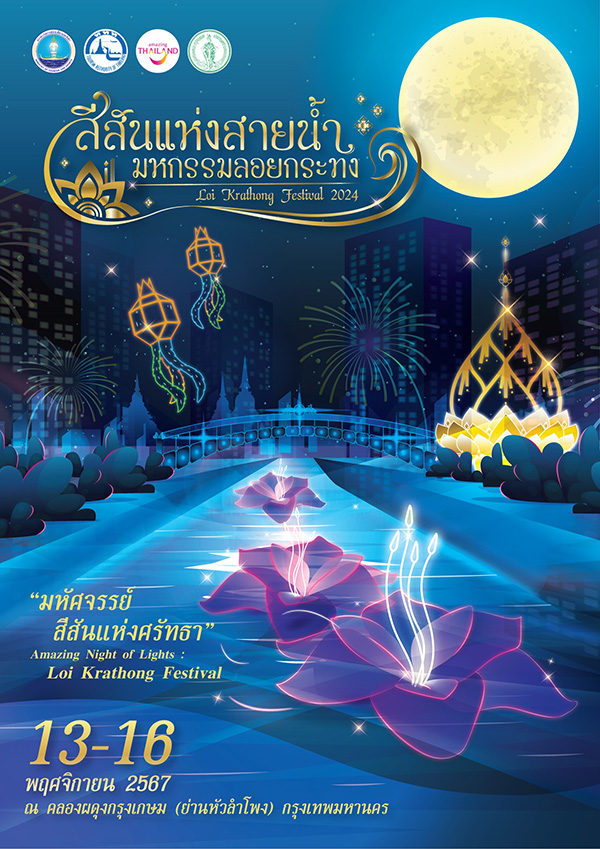 เชิญร่วมงานสีสันแห่งสายน้ำ มหกรรมลอยกระทง 2567 วันที่ 13-16 พฤศจิกายน 2567 ณ คลองผดุงกรุงเกษม กรุงเทพฯ พบกับกิจกรรมต่าง ๆ มากมาย เช่น