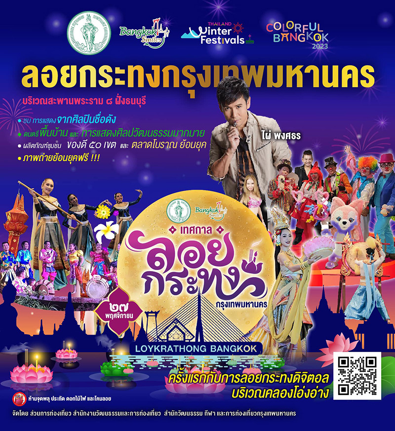 เชิญร่วมงานลอยกระทงกรุงเทพมหานคร วันที่ 27 พฤศจิกายน 2567 บริเวณสะพานพระราม 8 ฝั่งธนบุรี กรุงเทพฯ