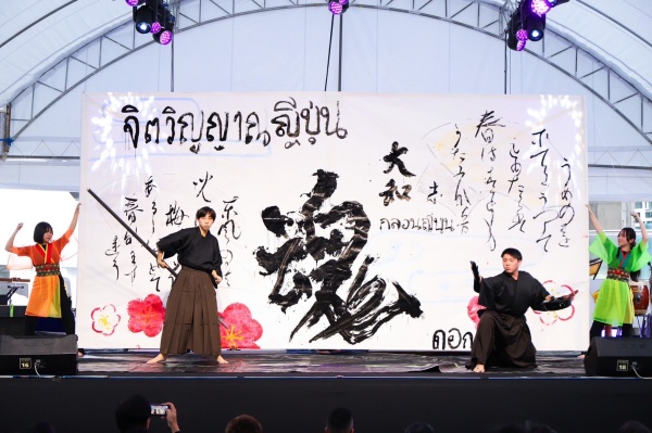 พิธีเปิดเริ่มต้นอย่างยิ่งใหญ่ด้วยการแสดงสุดพิเศษ “เบิกฟ้า เบิกแผ่นดิน สายสัมพันธ์ ญี่ปุ่น-ไทย” ที่ถ่ายทอดความงดงามของศิลปะการวาดพู่กันร่วมกันระหว่างตัวแทนสองเมือง