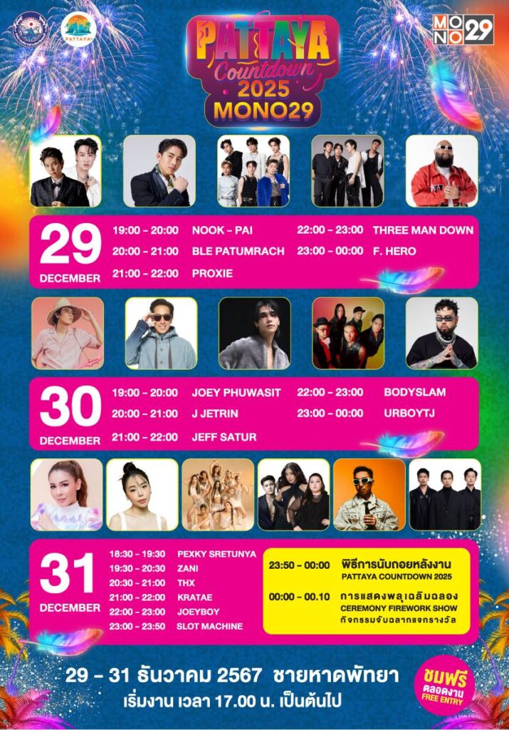 โดยศิลปินต่าง ๆ ที่จะมามอบความสุขใน “PATTAYA COUNTDOWN 2025” (พัทยาเคาท์ดาวน์ 2025) ดังนี้