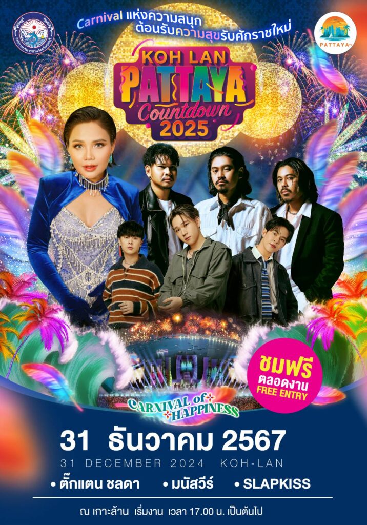 เพิ่มดีกรีความอลังการในการจัดงานเฉลิมฉลองสุดยิ่งใหญ่มากยิ่งขึ้นในทุก ๆ ปี สำหรับการจัดงานเทศกาลแห่งความสุข ส่งท้ายปีเก่าต้อนรับปีใหม่ โดย เมืองพัทยา–องค์การบริหารส่วนจังหวัดชลบุรี ล่าสุดสำหรับการจัดงาน “PATTAYA COUNTDOWN 2025” (พัทยาเคาท์ดาวน์ 2025) ในธีม “CARNIVAL of HAPPINESS” (คาร์นิวัลออฟแฮปปี้เนส) โดยผู้จัดงานพร้อมเนรมิตพื้นที่ชายหาดเมืองพัทยาเป็นดินแดนสุดมหัศจรรย์เพื่อเป็นการส่งเสริมและเผยแพร่การท่องเที่ยวเมืองพัทยา พร้อมยกระดับคุณภาพการท่องเที่ยวในพื้นที่สู่การท่องเที่ยวระดับโลก ภายในงานเต็มอิ่มกับกิจกรรมต่าง ๆ ตลอด 3 วัน 3 คืน ในวันที่ 29-31 ธันวาคม 2567 ตั้งแต่เวลา 17.00 น. เป็นต้นไป ณ บริเวณชายหาดพัทยา จังหวัดชลบุรี พร้อมโปรดักชั่น แสง สี เสียง จัดเต็มอย่างยิ่งใหญ่ ชมฟรีตลอดงาน!