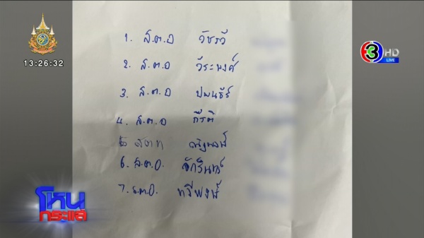บีม : ตอนนั้นหนูคิดเลยว่าใครเป็นคนทำ ถ้าเราออกจากตรงด่านหนูจะเอาชื่อ 7 คนนี้มาได้ยังไง หนูก็ป้องกันตัวเองด้วย หนูก็ให้เขาไปจดชื่อกันมาเลย หนูให้เขาแสดงบัตรราชการของเขา เพื่อเช็กว่าเขาเขียนชื่อตรงมั้ย เช็กทีละคนค่ะ