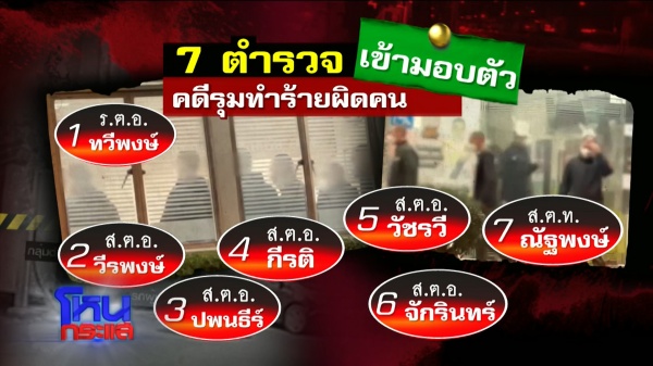 กรณี 7 ตร.จราจรก่อเหตุงามไส้ ทำร้ายร่างกายลูกชายอดีตนายตำรวจได้รับบาดเจ็บสาหัส เหตุติดตามจับเพราะเข้าใจผิดว่าเป็นรถยนต์ที่ขับแหกด่านตรวจแอลกอฮอล์ โดยตร.ทั้ง 7 นายไม่พูดพร่ำทำเพลงเข้าไปกระทืบ ตีเข่า เตะใบหน้าจนเส้นเลือดนัยน์ตาแตกทั้งสองข้าง ผู้เสียหายมีอาการยับเยิน ล่าสุดตร.ทั้ง 7 นาย ดอดเข้าให้ปากคำกับพนักงานสอบสวนสน.บางเขนเรียบร้อยแล้ว