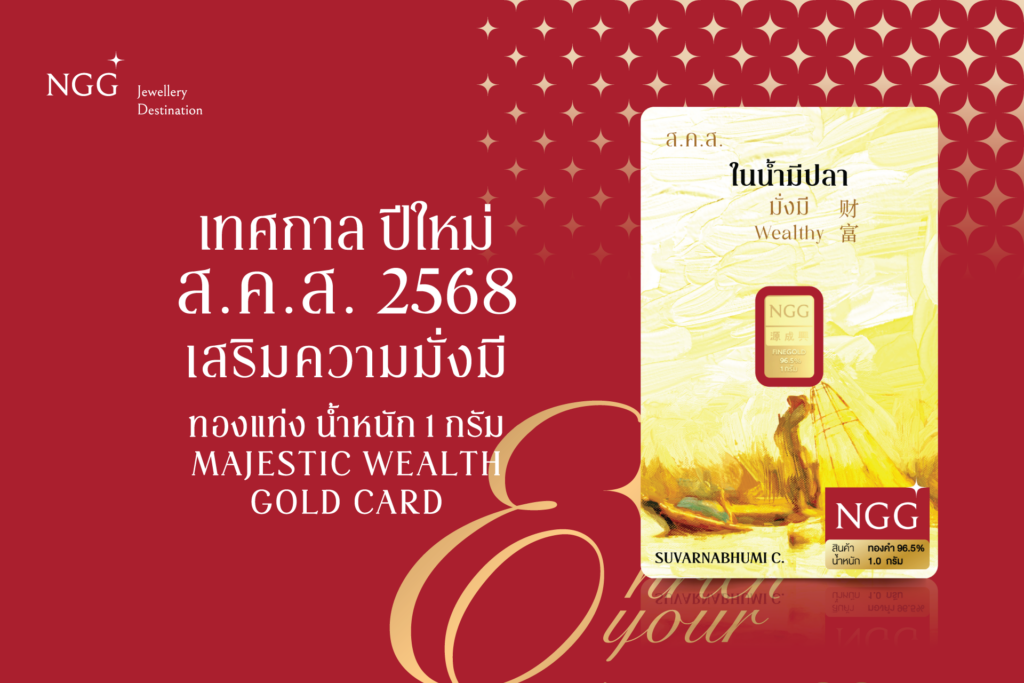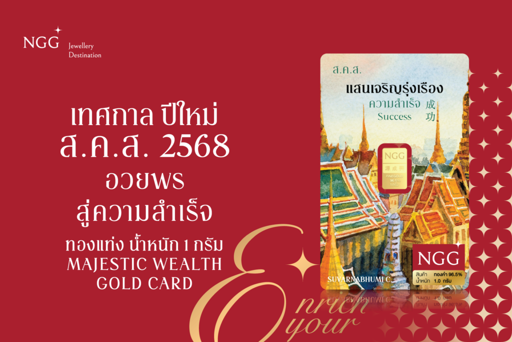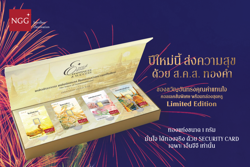 “NGG JEWELLERY” กระตุ้นยอดขายส่งท้ายปีเปิดตัวสินค้าใหม่ด้วยชุดของขวัญอันทรงคุณค่าแทนใจ “แผ่นทองคำแท้ ส.ค.ส. The Golden Path Collection” ทองแท่งขนาด 1 กรัมมี 4 ดีไซน์คอลเลคชั่นพิเศษบรรจุในกล่องสุดหรู Limited Edition มั่นใจได้ทองจริงด้วย Security Card เฉพาะที่ NGG เท่านั้นเปิด Branding Strategy เพิ่มคุณค่าให้สินค้าด้วยแรงบันดาลใจจากศิลปะวัฒนธรรมไทยเผยเป็นสินค้าที่เหมาะสำหรับเป็นของขวัญมงคล ในโอกาสพิเศษอย่างปีใหม่ที่ใกล้จะถึงนี้เพื่อมอบให้ผู้ใหญ่ที่เคารพสื่อถึงความสุขความสำเร็จและความมั่งคั่งสนใจซื้อสินค้าได้แล้วตั้งแต่วันนี้ทุกช่องทางออนไลน์และหน้าร้านสอบถามเพิ่มเติมได้ที่ NGG Jewellery ทุกสาขาทั่วประเทศ