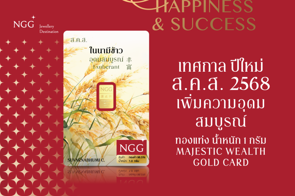 คอลเลคชั่นพิเศษ พร้อมกล่องสุดหรู Limited Edition กับทองแท่งขนาด 1 กรัม มี 4 ดีไซน์ให้สะสม มั่นใจได้ทองจริง ด้วย Security Card เฉพาะที่ NGG เท่านั้น ด้วยความโดดเด่นของสินค้าที่เน้นความเป็นมงคลและความหรูหรา คอลเลคชั่นที่ได้แรงบันดาลใจจากแผ่นดินทอง สู่แผ่นทองคำแท้ที่สะท้อนถึงความมั่งมี อุดมสมบูรณ์ และเปี่ยมไปด้วยความสุขและความสำเร็จในทุกย่างก้าว เหมาะแก่การสะสมและมอบเป็นของขวัญสำหรับทุกโอกาสที่ห้ามพลาด
