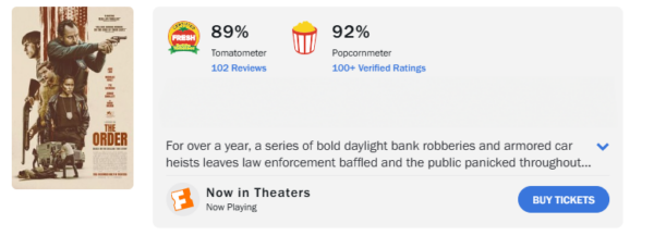 เป็นม้ามืดที่น่าจับตามองมากที่สุดปลายปีนี้สำหรับ “The Order จับตายขบวนการเดนคน” ภาพยนตร์อาชญากรรมสุดระทึกที่สร้างจากเรื่องจริงเมื่อช่วงปี 1980 ของขบวนการที่เรียกตัวเองว่า “ดิออร์เดอร์” (The Order) ลัทธิเหยียดผิวหัวรุนแรงที่มีความคิดสุดโต่งว่าคนขาวเหนือกว่าผู้อื่น พวกมันทั้งปล้น ฆ่า ปลอมแปลงธนบัตร ก่อเหตุความวุ่นวายทั่วเขตอเมริกาเหนือยาวนานนับปี ด้วยเนื้อเรื่องที่แม้จะเล่าเรื่องราวในอดีตแต่สามารถสะท้อนปัญหาของปัจจุบันได้อย่างเข้มข้น และฉากแอ็กชันที่จำลองสถานการณ์จริงได้อย่างเดือดดาล ส่งให้ภาพยนตร์ได้รับคำชมจากสื่อหลักทุกสำนักอย่างเป็นเอกฉันท์ และกวาดคะแนนจากนักวิจารณ์ทางเว็บไซต์ Rotten Tomatoes สูงถึง 89% และฝั่งผู้ชมถึง 92%