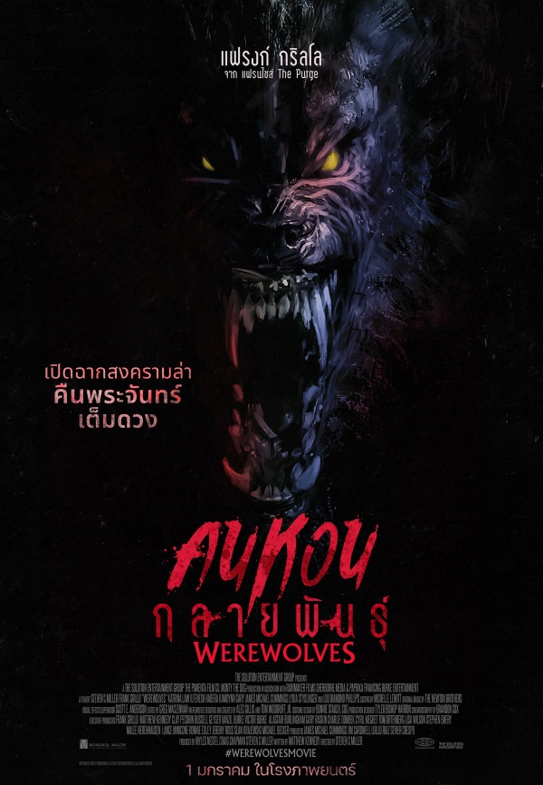 เปิดศักราชใหม่ด้วยความมันส์เลือดสาดในภาพยนตร์สยองขวัญสุดคัลต์ “Werewolves คนหอนกลายพันธุ์” ซึ่งล่าสุด “มงคลเมเจอร์” ได้ปล่อย “โปสเตอร์ไทย” และ “ตัวอย่างหนัง” บิลด์ความคลั่งให้เหล่าคอหนังโหดได้ตื่นตะลึงรอชมกัน กับเรื่องราวหนึ่งปีหลังจากเกิดปรากฏการณ์ซูเปอร์มูน ปลุกมนุษย์ทุกคนที่ถูกอาบแสงจันทร์ให้กลายเป็นหมาป่ากระหายเลือด และไล่ฆ่าทุกสิ่งตรงหน้าจนนำไปสู่โศกนาฏกรรมครั้งใหญ่ที่มีคนตายนับล้าน ฝันร้ายอำมหิตนั้นจะกลับมาอีกครั้ง ทั้งโลกจึงต้องเตรียมรับมือให้ได้ไม่ว่าจะต้องสูญเสียอะไรไปก็ตาม