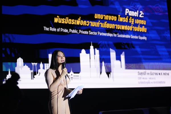 ในขณะที่เสวนา ช่วงที่ 2 เน้นยำถึงบทบาทของ ไพรด์ รัฐ เอกชน พันธมิตรเพื่อความเท่าเทียมทางเพศอย่างยั่งยืน