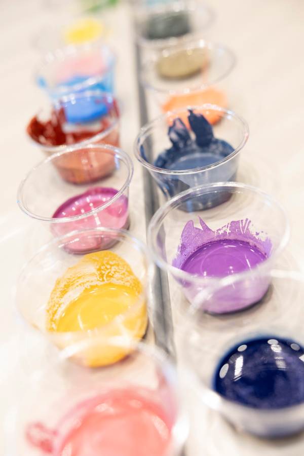 ความพิเศษของการวาดภาพในครั้งนี้คือ สีที่ใช้มาจากการผลิตเครื่องสําอางเช่น อายแชโดว์ บลัชออน ที่ผลิตขึ้นในระหว่างการพัฒนาผลิตภัณฑ์และไม่ได้ผลิตออกจำหน่าย เพื่อไม่ให้สูญเปล่าจึงกลายมาเป็นสีสำหรับศิลปินตัวน้อยและครอบครัวได้สร้างสรรค์จินตนาการบนพื้นที่ว่างเปล่าได้อย่างอิสระ