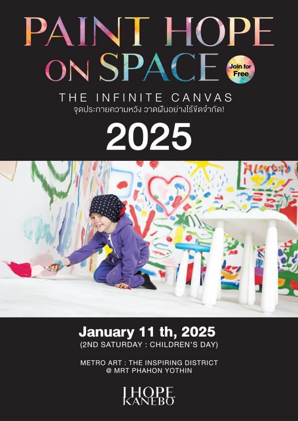 วันเด็กปีนี้ขอเชิญชวนคุณและครอบครัวพาศิลปินตัวน้อยมาร่วมงาน KANEBO PAINT HOPE ON SPACE 2025 ในวันเสาร์ที่ 11 มกราคม พ.ศ.2568 ตั้งแต่เวลา 10.00-18.00 น. ณ Metro Art สถานี MRT พหลโยธิน ร่วมงานฟรี!! ไม่มีค่าใช้จ่าย
