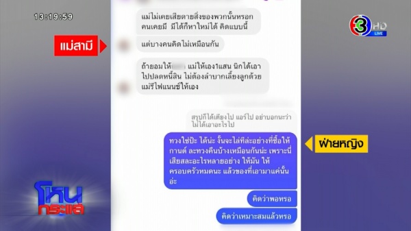 นิก : ไม่เคยด่าค่ะ หนูให้ความยุติธรรมกับเขานะ ถ้าหนูด่าหามาเลย หาข้อความมาเลย หนูไม่เคยด่าแม่เขา เหตุการณ์วันนั้นแม่เขามาจากภูเก็ต อยู่ ๆ เข้าไปรับลูกหนูที่บ้านแม่หนู หนูทำงานกับกานต์ เขาบอกจะพาหลานไปเที่ยวหน่อย หนูถามว่าแม่พาลูกไปไหน เขาบอกพามาร้านทอง พามาเจาะหูแล้วก็วางเลย หนูก็อ้าว ทำไมถึงไม่บอกหนู ลูกหนูเป็นคนนอนแล้วชอบจับติ่งหูตัวเอง หนูไม่อยากให้เจาะ ให้เขาโตก่อนแล้วให้เขาเลือกเอง ไม่ต้องไปบังคับให้ต้องเจาะ แต่แม่กานต์เขาพาไปเลยแล้วไม่บอกหนู หนูก็รู้สึกว่าไม่ได้แล้ว ก็โทรหากานต์ บอกว่ากานต์แม่พาน้องไปเจาะหูนะ แต่คำตอบที่ได้จากกานต์ กานต์บอกว่ามึงจะอะไรกับแม่นักหนาวะ มึงมีปัญหาอะไรกับแม่นักหนา หลานเขา เขาก็มีสิทธิ์ของเขา ใส่มาเต็มเลย หนูเลยพูดคำนึงว่ากลับมาวันจันทร์งั้นหย่าเลย เขาไปทำงานต่างจังหวัด หนูบอกกลับมาวันจันทร์หย่าเลย เพราะดูแล้วเขาไม่ได้รักแล้ว อะไรก็แม่ทุกอย่างหมดเลย แค่อยากให้ฟังหนูสักนิดนึง หนูวิดีโอคอลกับเขา พี่ที่ทำงานได้ยิน หนูอ้างแล้วว่าจะพาแม่ไปเจาะทำไม เดี๋ยวกานต์ก็ด่าหรอก เขาบอกว่าด่าก็ด่าไปสิ เดี๋ยวก็กลับแล้ว เขาไม่ได้รับผิดชอบอะไรเลย แค่อยากพาไปเจาะแค่นั้น เขาบอกหนูไปด่าแม่เขา ต้นเหตุหนูย้ายของไปอยู่บ้านแม่ แม่ผัวก็ใช้คู่สะใภ้หนูว่านิกไม่อยู่บ้านแล้วให้ไปล้างห้องน้ำ ให้ไปดูแลกานต์ ให้ทำความสะอาดบ้าน กานต์ไม่มีเวลา หนูคุยกับคู่สะใภ้อยู่ตลอดก็บอกว่าทำไมพี่ต้องไปทำ พี่ไม่ใช่คนรับใช้เขานะ ทำไมพี่ต้องทำให้เขาล่ะ คู่สะใภ้บอกว่าเขามาด่าฉันแล้ว เพราะหนูไปด่ากานต์ กานต์ไปด่าแม่ว่าทำไมต้องใช้คนอื่นให้มาทำให้ แม่ผัวก็เลยทักไปหาคู่สะใภ้แล้วด่ากัน หนูเลยพิมพ์ไปว่า ถ้าเขาไม่บล็อกนี่ด่าเองแล้ว ประโยคแค่นี้แหละค่ะ ที่กานต์ว่าหนูไปด่าแม่เขา