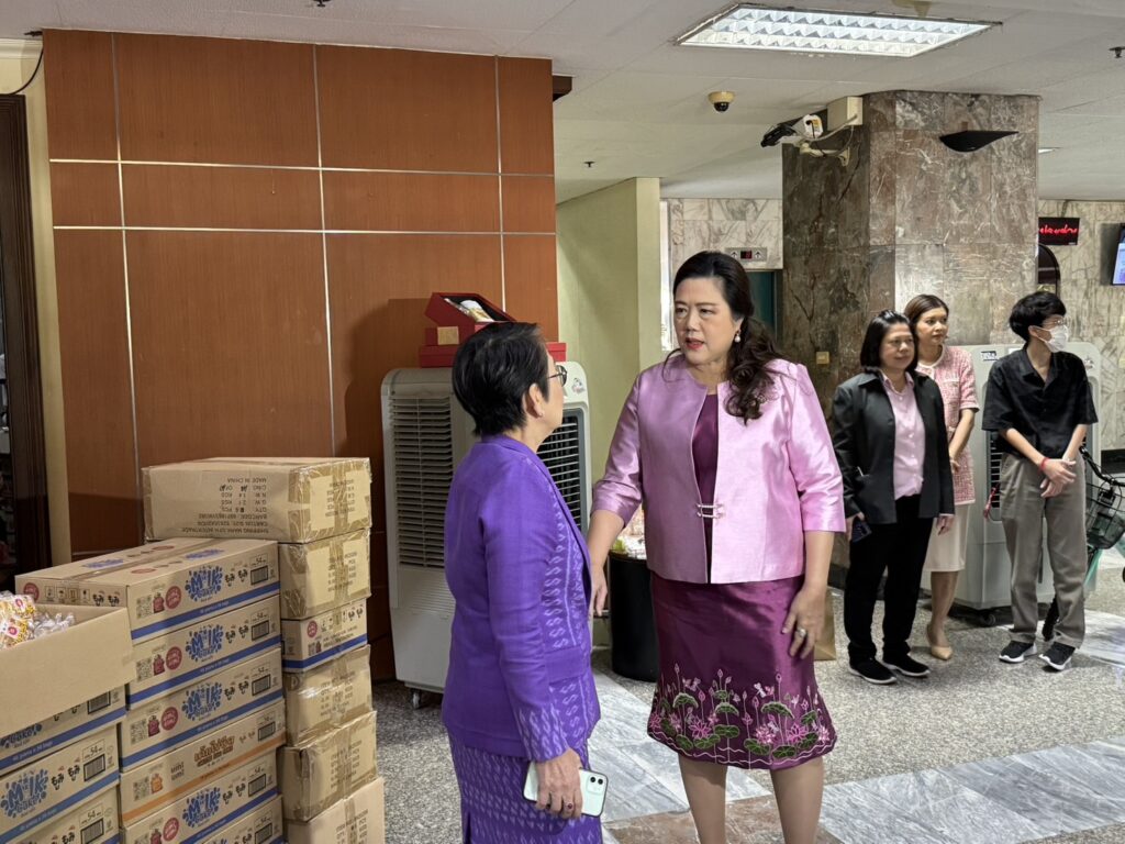 โดยวันนี้ ทางมูลนิธิฯ ได้นำสิ่งของมามอบให้กรมประชาสัมพันธ์ ประกอบด้วย เค้กไข่ชีส 5 ลัง มิลค์เค้ก 17 ลัง แครกเกอร์ 16 ลัง ตุ๊กตาหมี 20 ตัว ซึ่งได้รับการสนับสนุนจากภาคเอกชน จากบริษัท ไบ่ ลี่ เอ็นเตอร์ไพร์ส จำกัด และบริษัท แวลู่พลัส รีเทล จำกัด