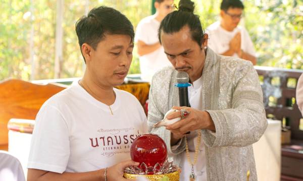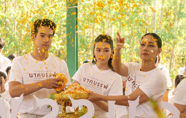 ฤกษ์ดีวันธงชัยแรกของปี ทีมผู้สร้างและนักแสดงภาพยนตร์เรื่อง “นาคบรรพ์” ร่วมทำพิธีเสริมความเป็นสิริมงคล บรรยากาศเต็มไปด้วยความขลังและความศักดิ์สิทธิ์ มีสื่อมวลชน แฟนคลับ และแฟนภาพยนตร์เดินทางมาร่วมในพิธีด้วย โดยช่วงเช้าเริ่มด้วยพิธีบวงสรวงเหรียญองค์พญาเพชรภัทรนาคราช รุ่น “นาคบรรพ์” และพิธีถวายลูกแก้วต่อองค์พญาเพชรภัทรนาคราช ช่วงบ่ายเข้าสู่พิธีเจริญพระพุทธมนต์ พิธีสวดพุทธาภิเษก โดยพระเกจิคณาจารย์ 5 รูป นั่งปรกอธิษฐานจิต พระราชภาวนาวชิราจารย์ (ท่านเจ้าคุณสุรศักดิ์ อติสกฺโข) พระครูสุนทรโชติธรรม (หลวงปู่บุญมา โชติธมฺโน) พระอาจารย์อดิเรก (พระครูธรรมํรอดิเรก อนุตฺตโร) หลวงปู่สมบูรณ์ สิริปัญโญ หลวงปู่แก้ว สุทธิญาโณ ต่อด้วยจุดเทียนบาตรน้ำมนต์ และพิธีดับเทียนชัย เป็นอันเสร็จพิธี