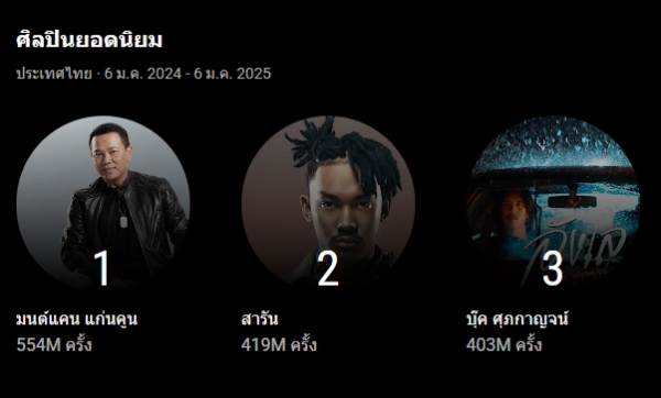 เป็นศิลปินที่มีแฟนเพลงทั่วประเทศให้กำลังใจแบบต่อเนื่อง สำหรับอ้าย ”มนต์แคน แก่นคูน“ ที่ล่าสุดทาง Youtube เผยสถิติประจำปี 2024 ผ่าน Youtube Charts ย้อนหลัง 365 วัน ระหว่างวันที่ 6 มกราคม 2024 – 6 มกราคม 2025 เผยว่า “มนต์แคน แก่นคูน” ครองอันดับ 1 ศิลปินยอดสตรีมสูงสูดในไทยปี 2024 ด้วยการรับชมกว่า 554 ล้านวิว ซึ่งเป็นอีกปีที่ศิลปินเสียงสุดสะแนนได้ครองแชมป์ในอันดับที่ 1 ถือว่าเป็นเรื่องน่ายินดีสำหรับวงการลูกทุ่งบ้านเราที่กระแสเพลงลูกทุ่งยังคงได้รับความนิยมและอยู่คู่กับพี่น้องชาวไทยทั่วประเทศตลอดมา