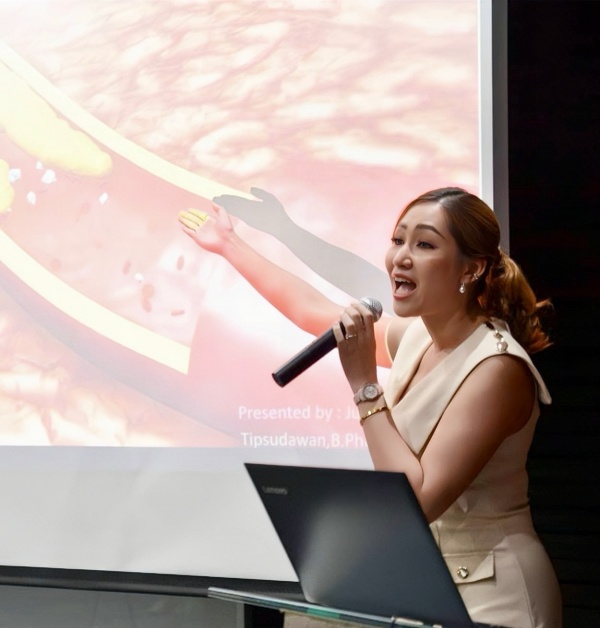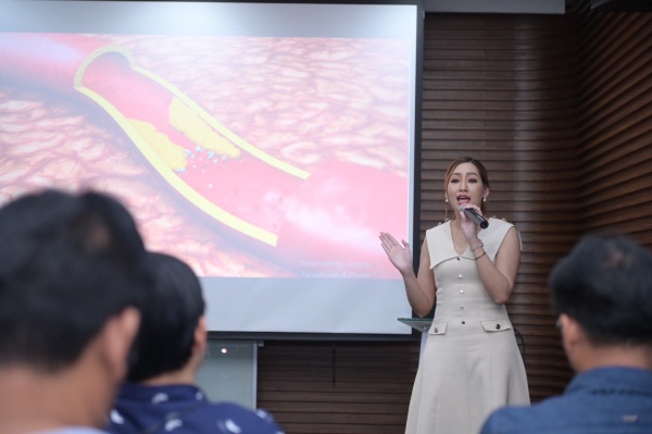 และ ภญ.จุฑาทิพย์ ทิพสุดาวัลย์ (Product Specialist) ที่ได้มาให้ความรู้หลากหลายที่เกี่ยวกับการป้องกันการเกิดโรคและการดูแลรักษาโรคที่เกี่ยวกับการอุดตันของเส้นเลือดที่เป็นต้นเหตุสำคัญที่ทำให้เกิดโรคร้ายแรงตามมา ไม่ว่าจะเป็นโรคเลือดสมอง(STROKE) หรือ โรคหลอดเลือดหัวใจตีบนำไปสู่หัวใจขาดเลือด โดยเปิดเผยว่า จากประสบการณ์และความทุ่มเทกว่า 16 ปีของพานาซี ได้ทำงานวิจัยกับผู้ป่วยหลายหลายกลุ่ม หนึ่งในนั้น ก็คือกลุ่มที่มี โรคความดัน เบาหวาน ไขมันพอกตับ และมีการอักเสบของเส้นเลือด ทำให้มีความจำเป็นเร่งด่วน ในการหาทางป้องกันการเกิดโรคที่เกี่ยวกับการอุดตันของเส้นเลือดที่เป็นต้นเหตุสำคัญของการเกิดโรคร้ายแรงเหล่านี้ รวมถึงการดูแลรักษาโรคนี้ให้มีประสิทธิภาพสูงสุด ศูนย์วิจัยของ รพ.พานาซี จึงได้ค้นพบผลิตภัณฑ์ที่สามารถปกป้องสุขภาพของหลอดเลือดได้อย่างมีประสิทธิภาพสูง