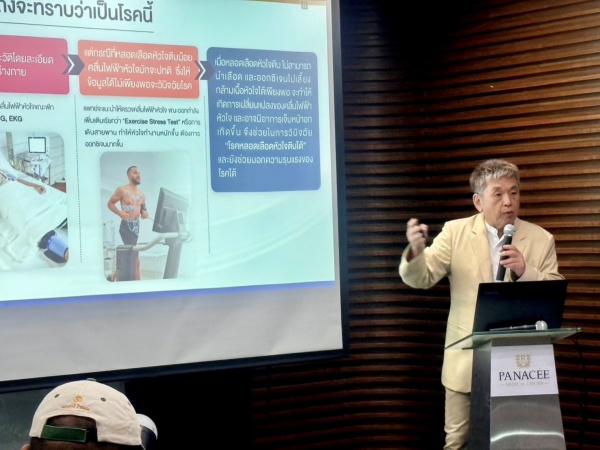 นพ.สุจิตร์ บัญญัติปิยพจน์ (แพทย์ผู้เชี่ยวชาญด้านศัลยกรรมหัวใจและหลอดเลือดของพานาซี) ที่ได้มาถ่ายทอดประสบการณ์ความรู้เชิงลึกในหัวข้อ สถานการณ์โรคหลอดเลือดหัวใจ และกลยุทธ์เชิงรุกในการป้องกันและรักษาโรคจากหลอดเลือด กล่าวว่า “โรคหลอดเลือดหัวใจและหลอดเลือดสมองมีโอกาสที่จะทำให้เสียชีวิตค่อนข้างสูง มีผู้ป่วยเสียชีวิตจากโรคนี้ถึงนาทีละ 9 คน อย่างหัวใจคนเราเนี่ย กล้ามเนื้อหัวใจเราไม่สามารถสร้างเซลล์ใหม่ได้ เพราะฉะนั้นถ้าผ่านถึงจุดที่มีกล้ามเนื้อหัวใจตายเนี่ยส่วนใหญ่ก็จะแย่ลงเรื่อย ๆ ถึงแม้เราจะทำการผ่าตัดเราก็ช่วยได้แค่ป้องกันไม่ให้เป็นเพิ่มมากขึ้น มาถึงตรงนี้เราถือว่าเป็นปลายทางแล้วนะครับ หลังจากการรักษาก็ต้องกินยาไปเรื่อย ๆ จะหยุดไม่ได้ และในส่วนปัญหาเรื่องหลอดเลือดสมอง ซึ่งถ้าแตก หรือตีบ ก็อาจเป็นสาเหตุของอัมพาตหรืออัมพฤกษ์ ได้มันก็มีสาเหตุจากไขมันอุดตันในหลอดเลือดเช่นกัน