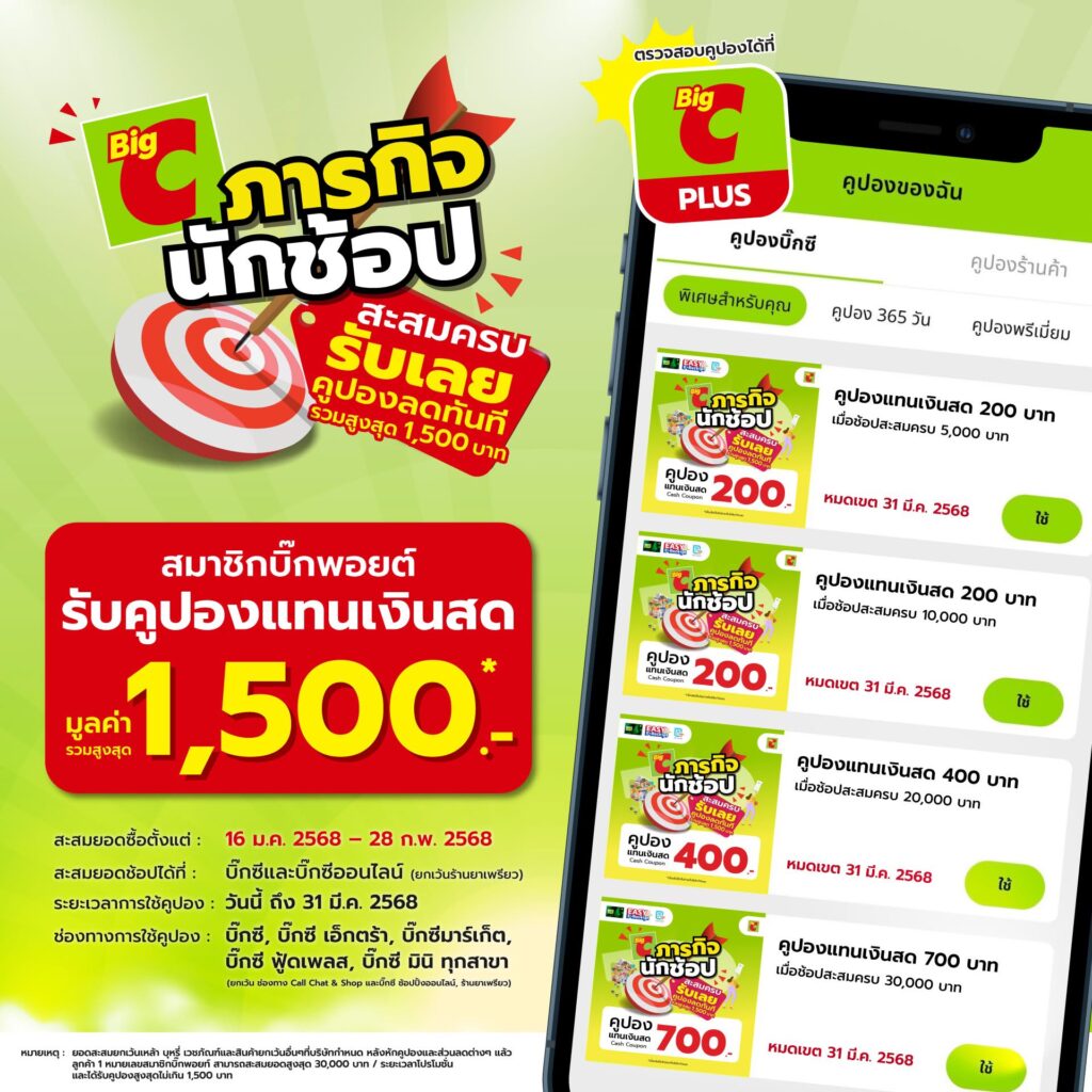 ขณะเดียวกัน บิ๊กซี ยังนำเสนอแคมเปญพิเศษเฉพาะสมาชิกบิ๊กพอยต์ ช้อปทุกแผนกรับเพิ่มส่วนลดรวมสูงสุด 6,000 บาท เพื่อมอบความคุ้มค่าให้แก่ลูกค้ามากยิ่งขึ้น แบ่งเป็น “ภารกิจนักช้อป” รับคูปองแทนเงินสดมูลค่ารวมสูงสุด 1,500 บาท เมื่อซื้อสินค้าสะสมทุกแผนก ครบ 30,000 บาท ตามเงื่อนไขที่กำหนด ซึ่งลูกค้าสามารถใช้คูปองแทนเงินสดดังกล่าวได้จนถึงวันที่ 31 มีนาคม 2568 นอกจากนี้ ยังมีสินค้ากลุ่มเครื่องใช้ไฟฟ้าลดทันทีสูงสุด 4,500 บาท เมื่อซื้อสินค้าที่ร่วมรายการ ครบ 30,000 บาทตั้งแต่วันที่ 16 มกราคม 2568 – 28 กุมภาพันธ์ 2568