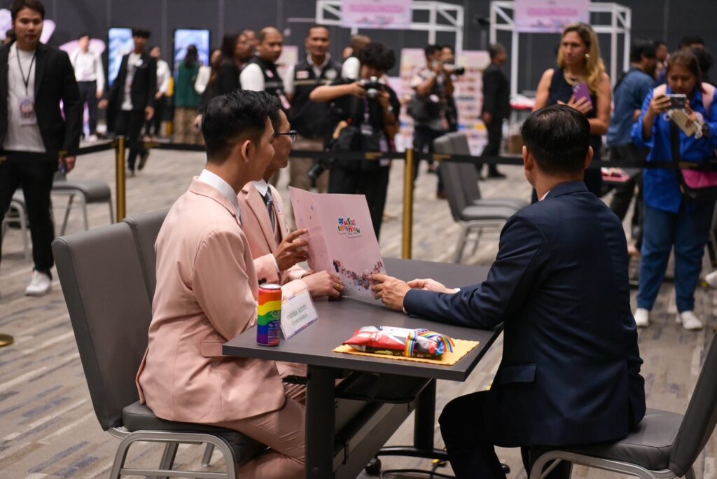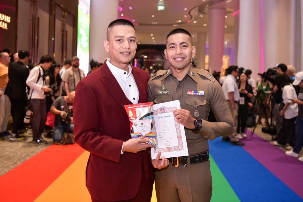 คุณเทียนชัย จูพัฒนกุล รองกรรมการผู้จัดการ สำนักสื่อสารองค์กรและกิจกรรมเพื่อสังคม ตัวแทนข้าวตราฉัตร ร่วมแสดงความยินดีคู่รัก LGBTQIA+ ในงาน Marriage Equality Day ณ พารากอน ฮอลล์ ชั้น 5 ศูนย์การค้าสยามพารากอน