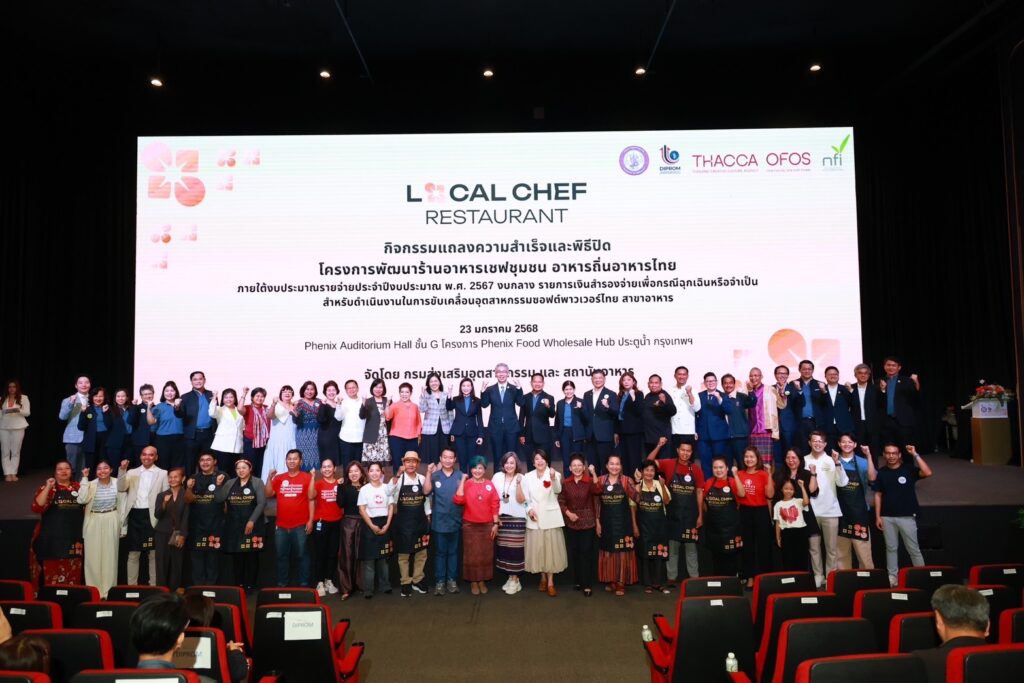 กรุงเทพฯ 23 มกราคม 2568 – กระทรวงอุตสาหกรรม โดยกรมส่งเสริมอุตสาหกรรม โชว์ผลสำเร็จการขับเคลื่อนแผนงานตามยุทธ์ศาสตร์การพัฒนาซอฟพาวเวอร์ไทย นโยบายเรือธงสำคัญ (Flagship) ของรัฐบาล ภายใต้กลไก OFOS (One Family One Soft power) หรือ 1 ครอบครัว 1 ซอฟต์พาวเวอร์ สาขาอาหาร ผ่านโครงการพัฒนาร้านอาหารเชฟชุมชน อาหารถิ่นอาหารไทย (Local Chef Restaurant) เน้นการสร้างอาชีพและรายได้ในท้องถิ่นผ่านวัฒนธรรมอาหารถิ่น พัฒนาบุคลากรธุรกิจร้านอาหารและต่อยอดสู่ธุรกิจอื่น ๆ แบบมืออาชีพ โดยนำร่องความสำเร็จในพื้นที่ภาคกลางและภาคตะวันออกเฉียงเหนือ รังสรรค์เมนูอาหารพลังสร้างสรรค์ จำนวน 42 เมนู อาทิ ยำชะครามกุ้งสด ไก่ย่างเขาสวนกวาง แกงคั่วเห็ดเพาะ ผัดหมี่โคราช เมี่ยงบัวหลวง ตอกย้ำมนต์เสน่ห์อาหารไทยไม่แพ้ชาติใด และคาดว่าจะเกิดการขับเคลื่อนเศรษฐกิจมูลค่าไม่น้อยกว่า 100 ล้านบาท พร้อมตั้งเป้าพัฒนาร้านอาหารเชฟชุมชน อาหารถิ่นอาหารไทย 540 ร้าน / 2,160 คน ภายในระยะเวลา 4 ปี