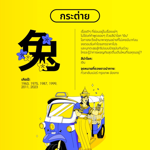 คนเกิดปีเถาะเป็นคนรักสงบ มีเมตตา คุณกระต่ายขึ้นชื่อเรื่องความสุภาพนุ่มนวล และการตัดสินใจอย่างรอบคอบ สถานที่ที่ให้ความรู้สึกสงบและมีสไตล์จะดึงดูดใจคนปีเถาะเป็นพิเศษ ทิวทัศน์ที่น่าตื่นตาของกัวลาลัมเปอร์ ไม่ว่าจะเป็นทะเลสาบสวยงามเงียบสงบ พืชพรรณเขียวขจี และทิวทัศน์ที่ตระการตา ล้วนช่วยฟื้นฟูพลังและมอบความสงบให้คุณกระต่ายผู้อ่อนโยน