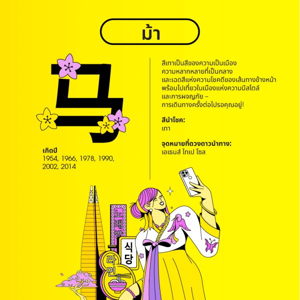 คนเกิดปีมะเมียรักอิสระ และการผจญภัย คนเกิดปีนี้มีความสุขในสภาพแวดล้อมที่มีชีวิตชีวา พวกเขาโลดแล่นอย่างเบิกบานในจังหวะชีวิตที่ฉับไว แหล่งท่องเที่ยวทางประวัติศาสตร์และเทศกาลที่คึกคักของประเทศกรีซเหมาะกับลักษณะของคุณม้าที่มีพลังล้นเหลือ เมืองเอเธนส์ที่ผสานความลุ่มลึกของประเพณีและการสำรวจที่น่าตื่นเต้นไว้อย่างลงตัว สะท้อนลักษณะของคุณม้าที่รักความตื่นเต้นและประสบการณ์ที่มีชีวิตชีวา เมืองเอเธนส์เป็นจุดหมายท่องเที่ยวที่คนกระหายการผจญภัยต้องไปเยือน
