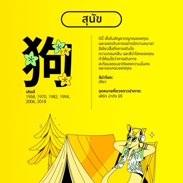 คนเกิดปีจอเป็นคนที่ชอบปกป้องคนอื่น และซื่อสัตย์ พวกเขาจะชอบจุดหมายท่องเที่ยวที่เป็นมิตร และน่าผจญภัย วัฒนธรรมมินังกาเบาในปาดังเหมาะกับลักษณะนิสัยของคนปีจอ การสำรวจเมืองโบราณแห่งสุมาตราตะวันตกที่รุ่มรวยประเพณีและสารพันอาหารเลิศรสจะทำให้คนปีจอตื่นเต้นได้ไม่รู้จบ
